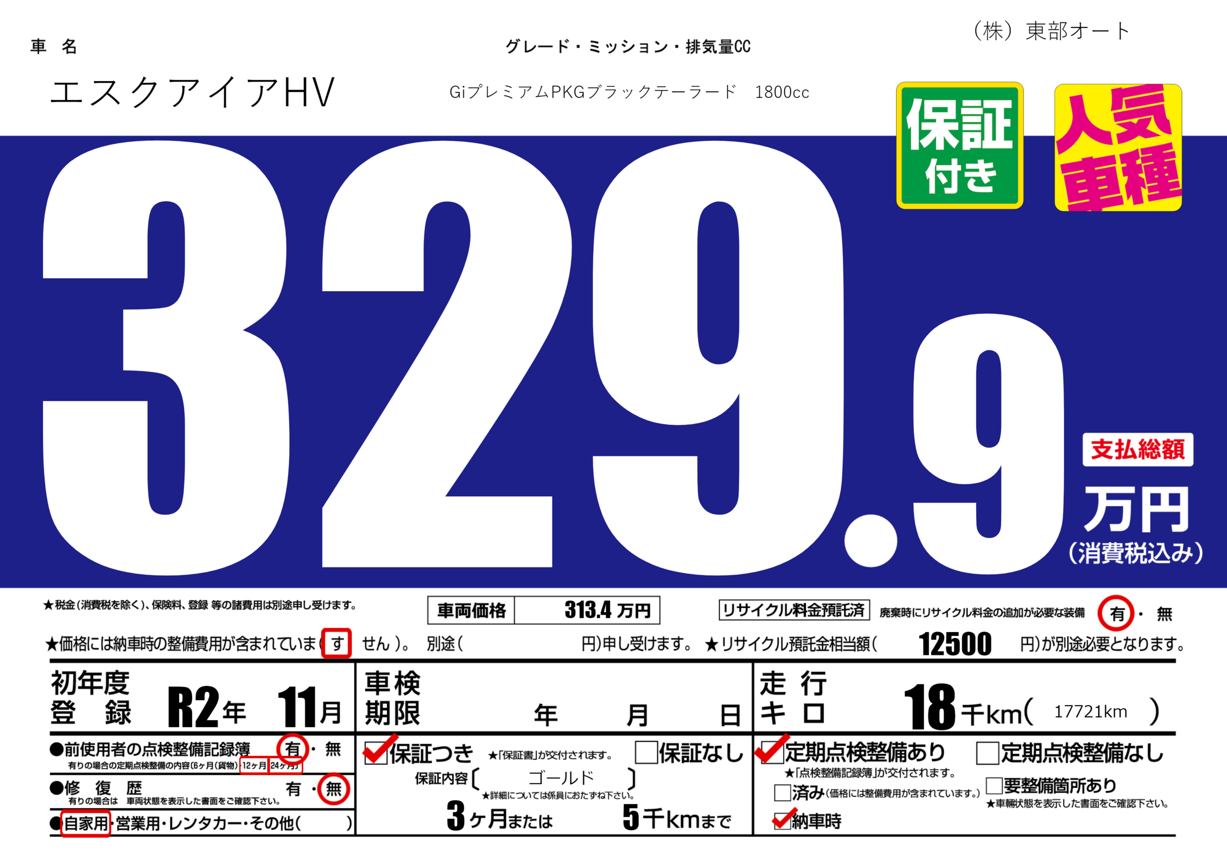 保証付き 保証内容( ゴールド) 3ヶ月または(5)千kmまで |