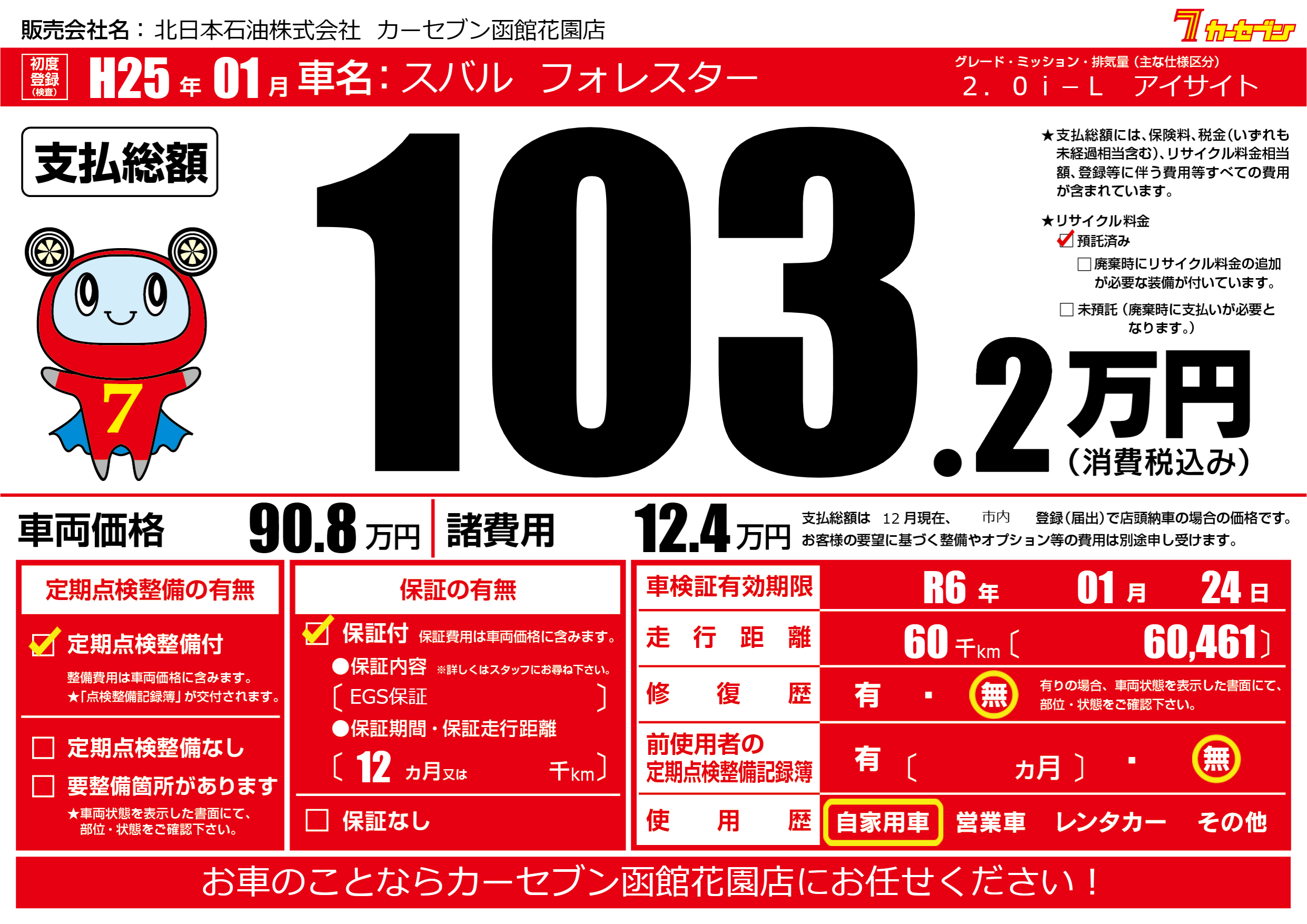 | 車検制限 | R6年 01月 24日 | ||