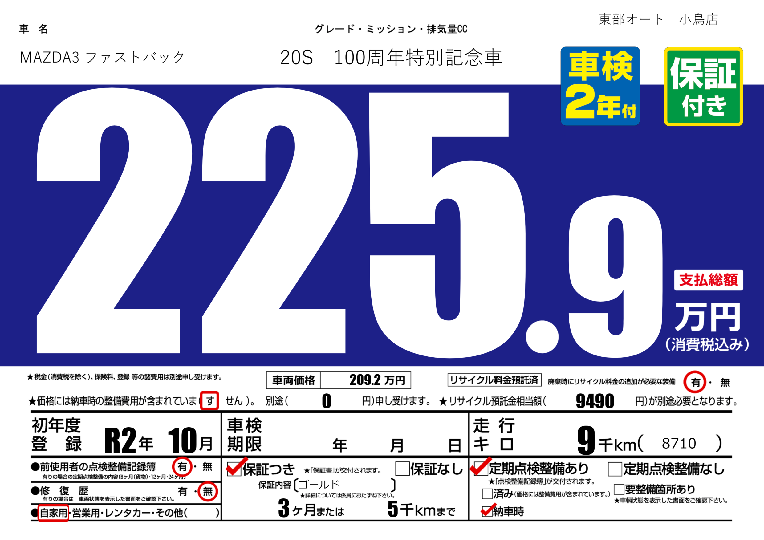 保証付き 保証内容(ゴールド) 3ヶ月または(5)千kmまで |