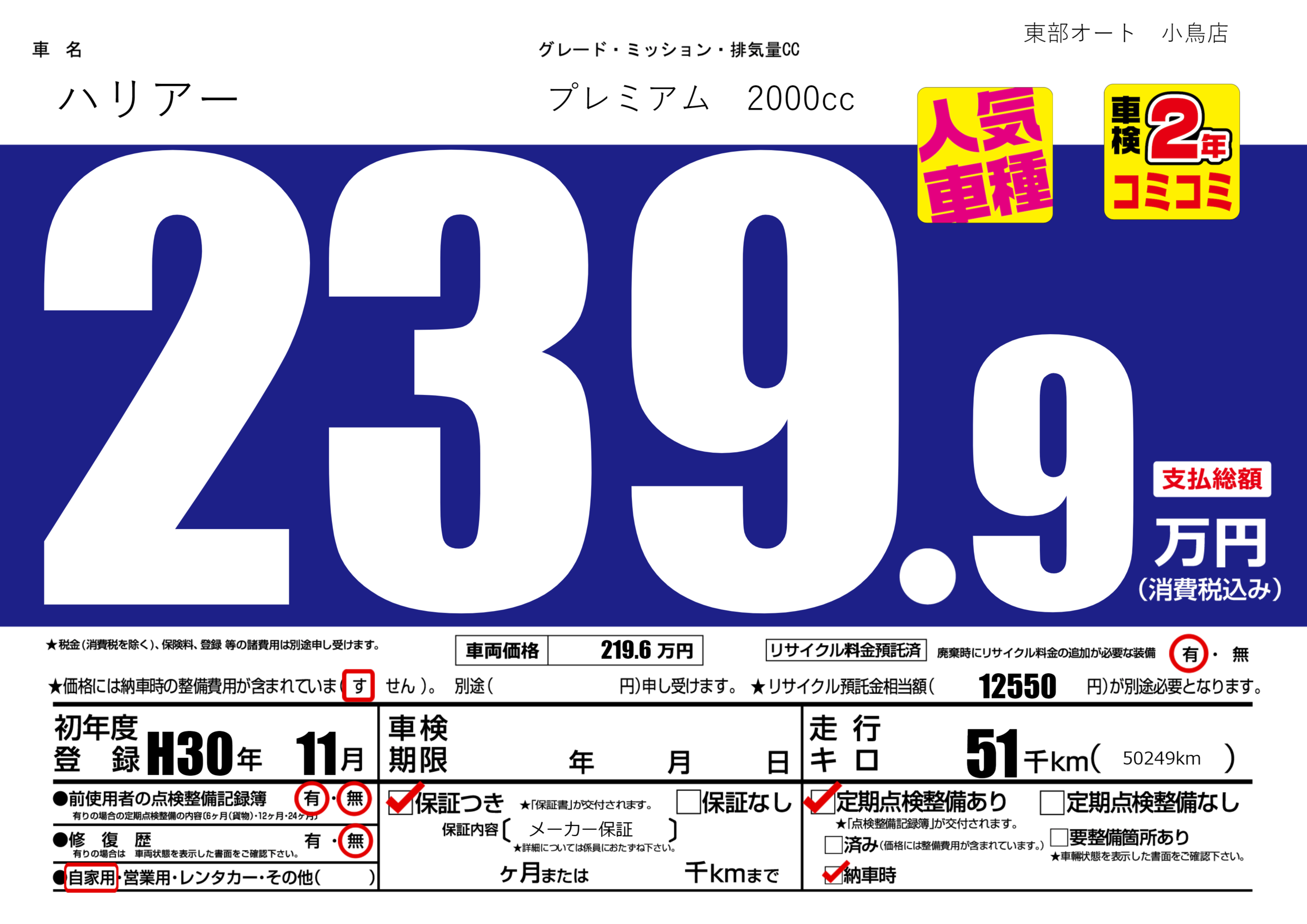 | 定期点検整備 | 定期点検整備あり 納車時あり | ||