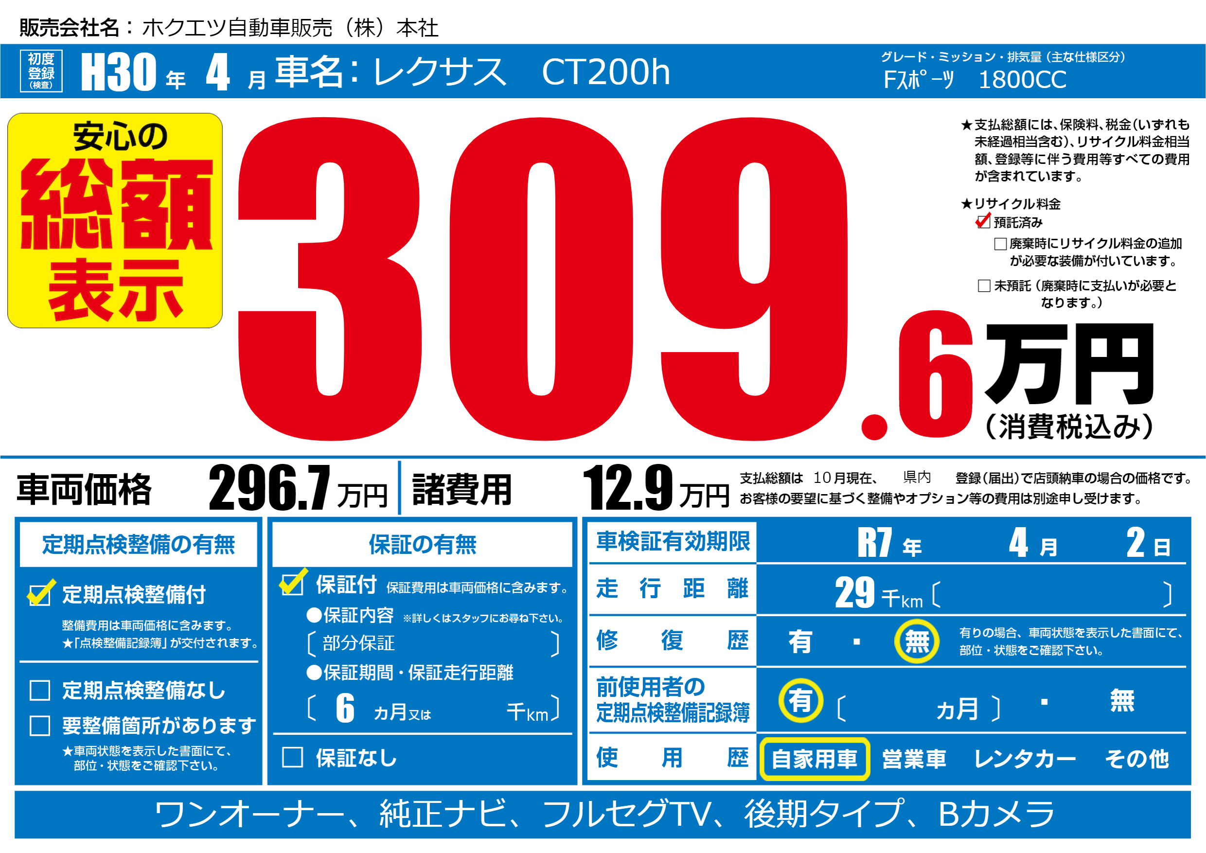 | 定期点検整備 | 定期点検整備あり | ||