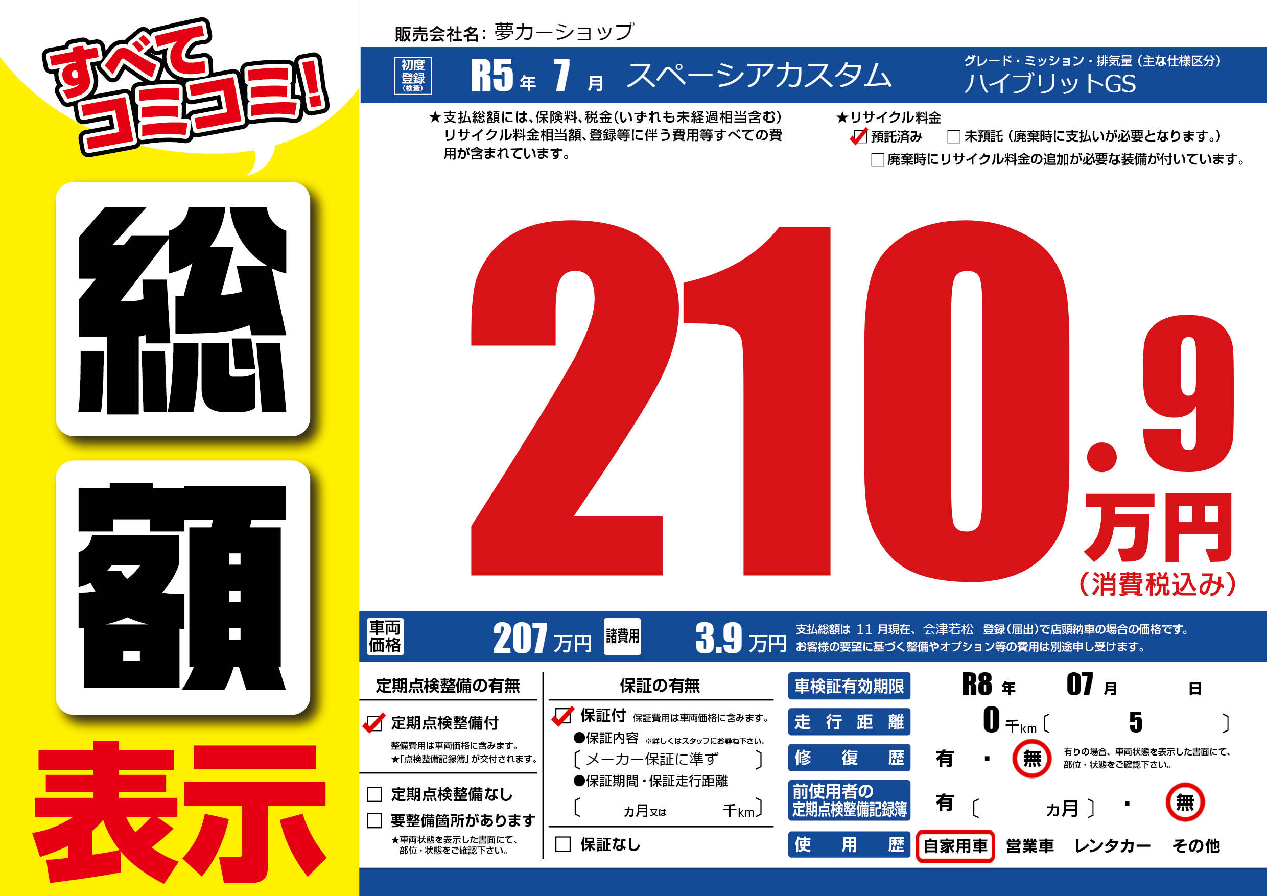 | 車名 | スペーシアカスタム | グレード ミッション 排気量 |