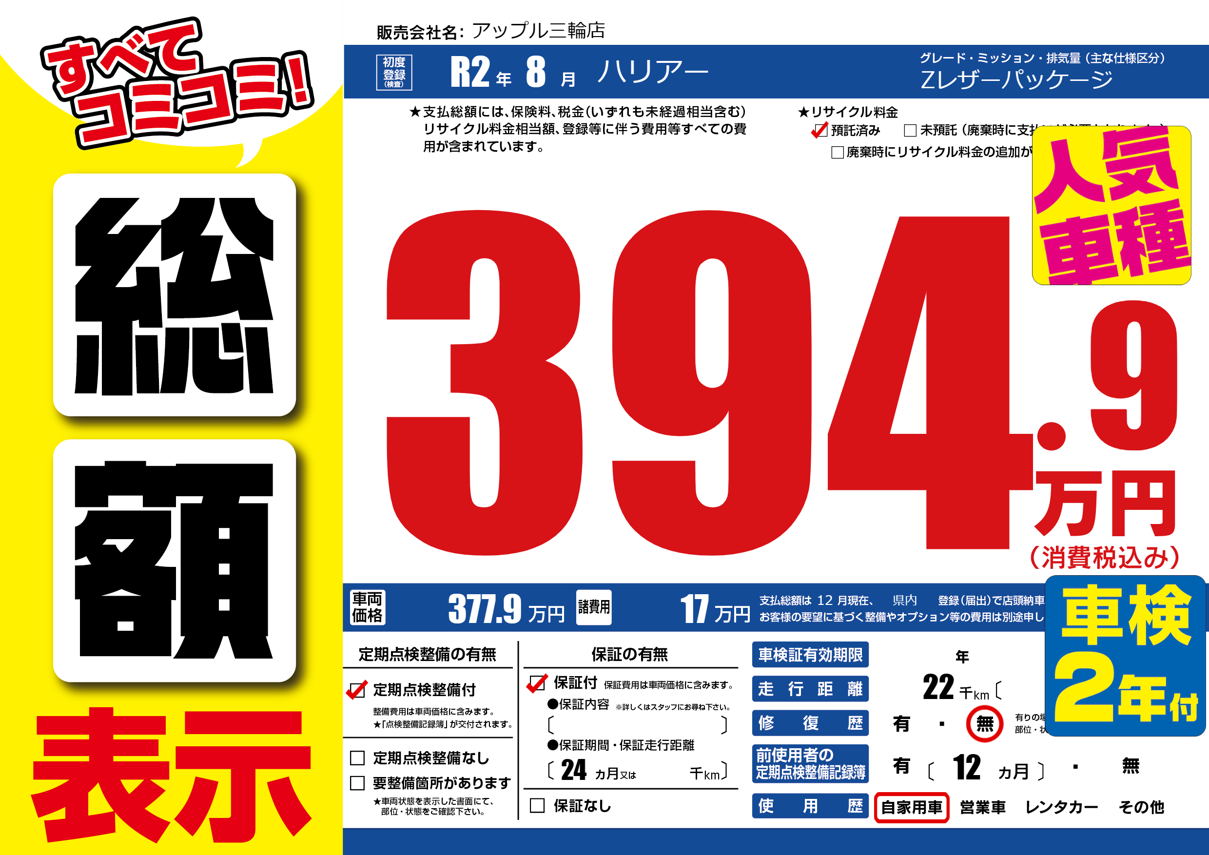 | 定期点検整備 | 定期点検整備あり | ||