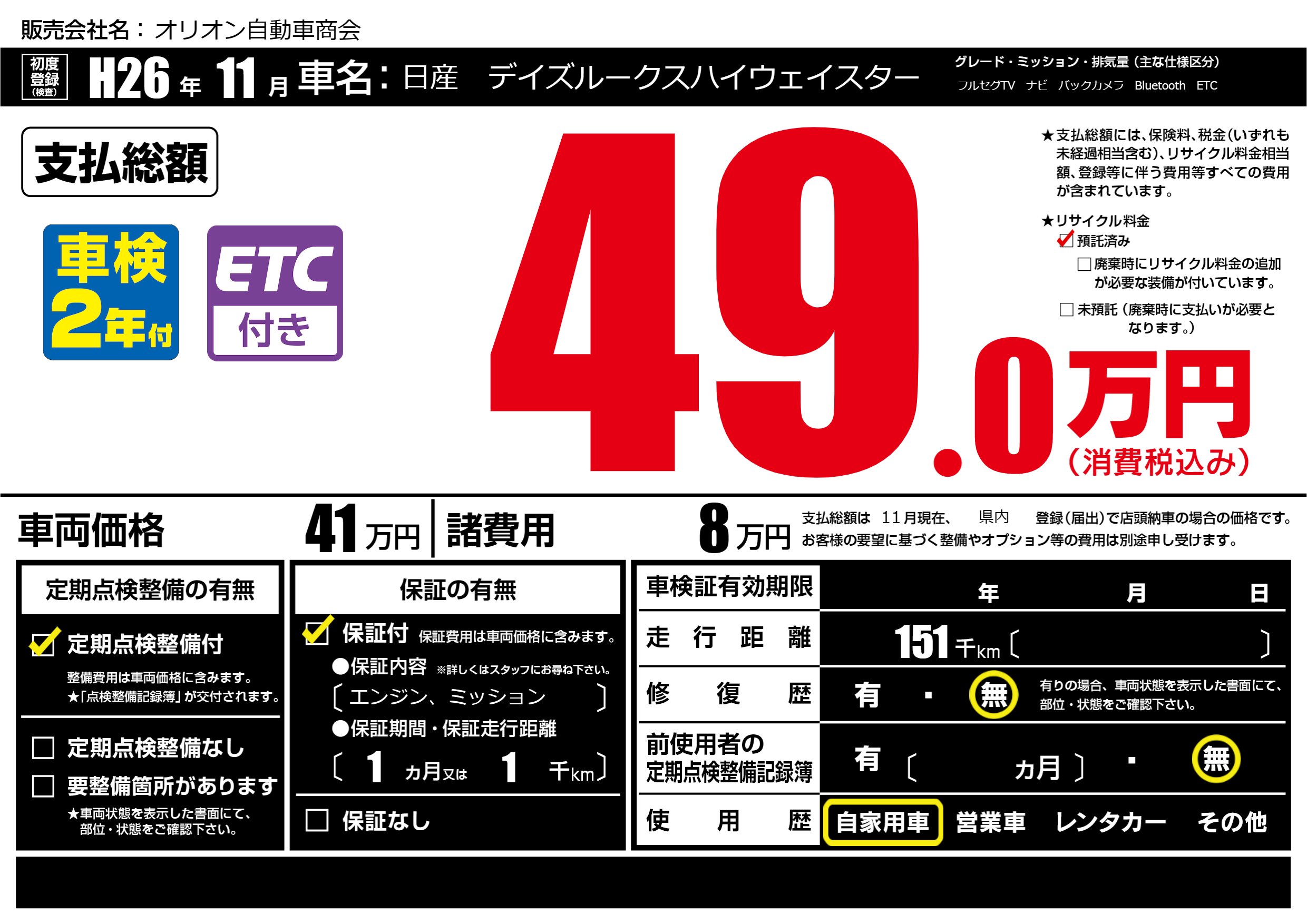 初年度登録 H26年11月