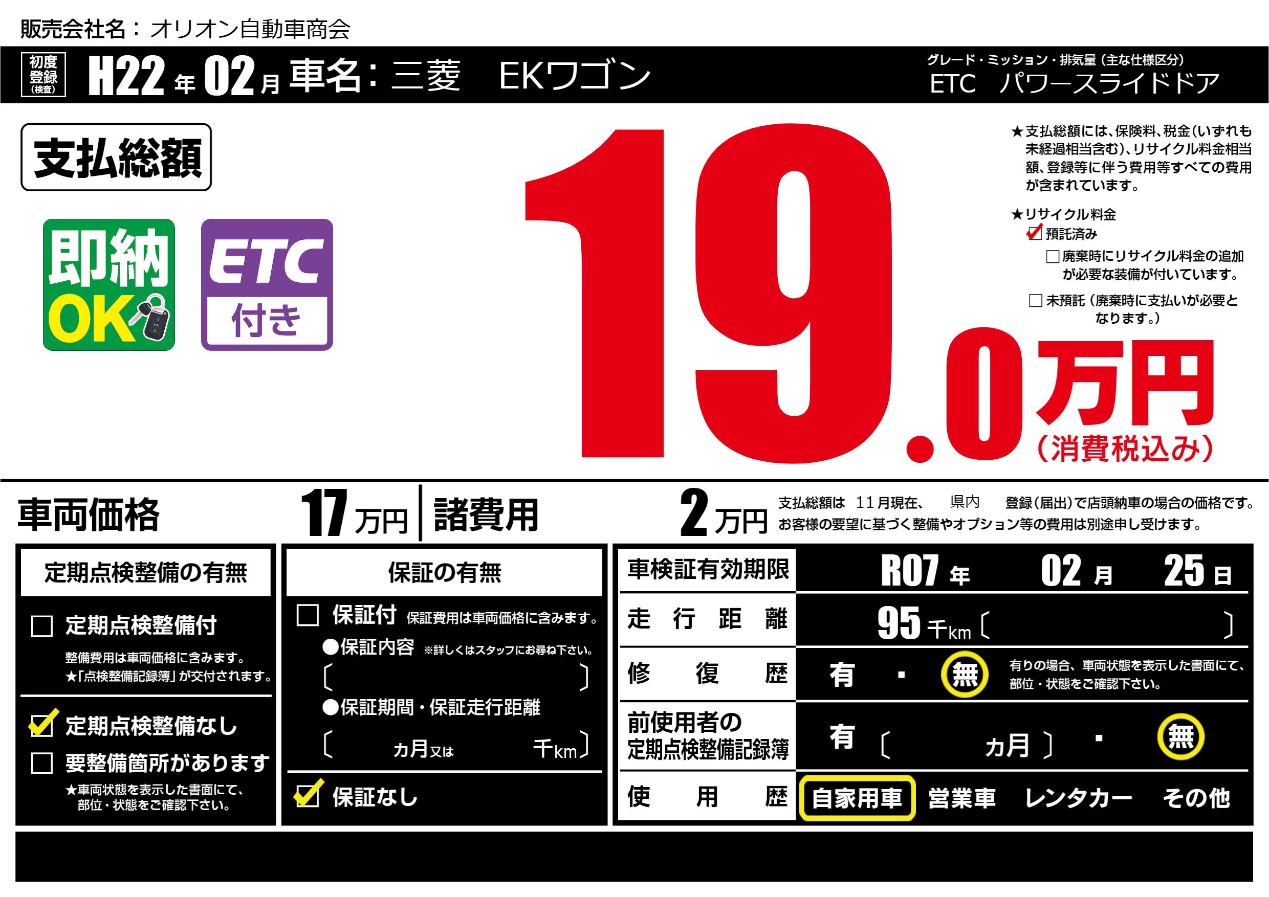 なし | 車検制限 | R07年02月25月 |