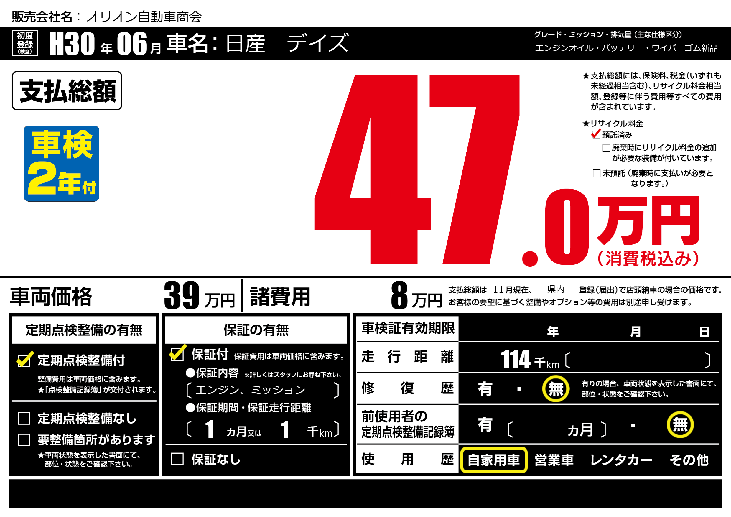 | 定期点検整備 | 定期点検整備あり | ||