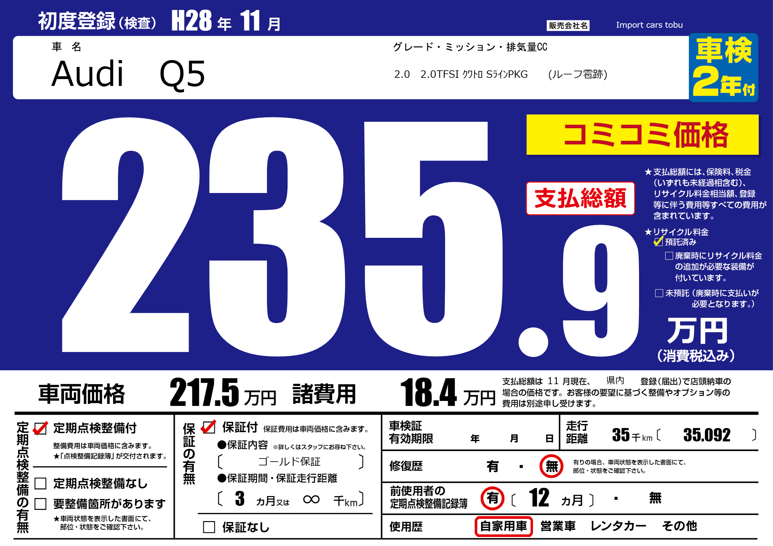 | 走行キロ | 3.5万km | ||