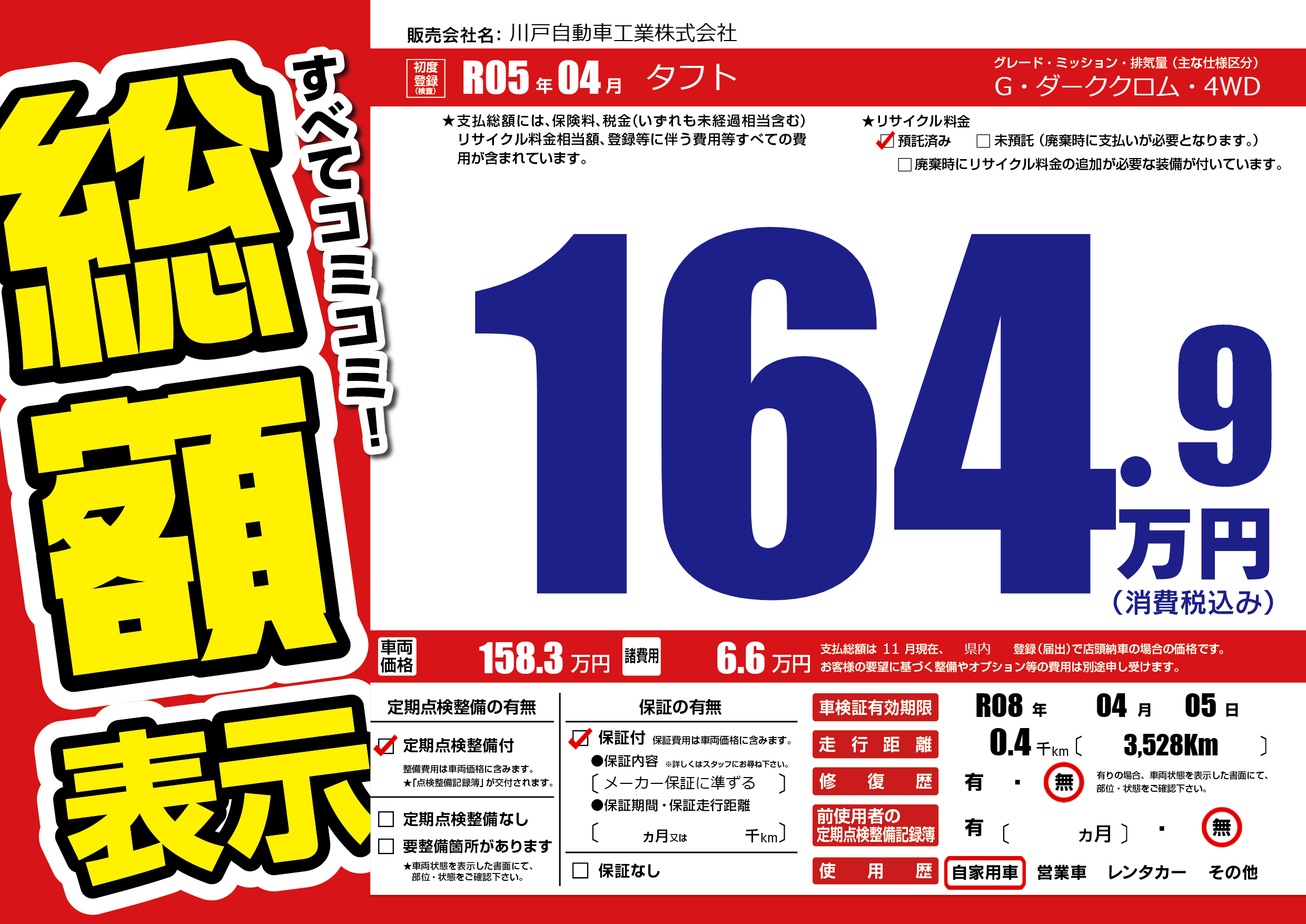 なし | 車検制限 | R08年04月05月 |