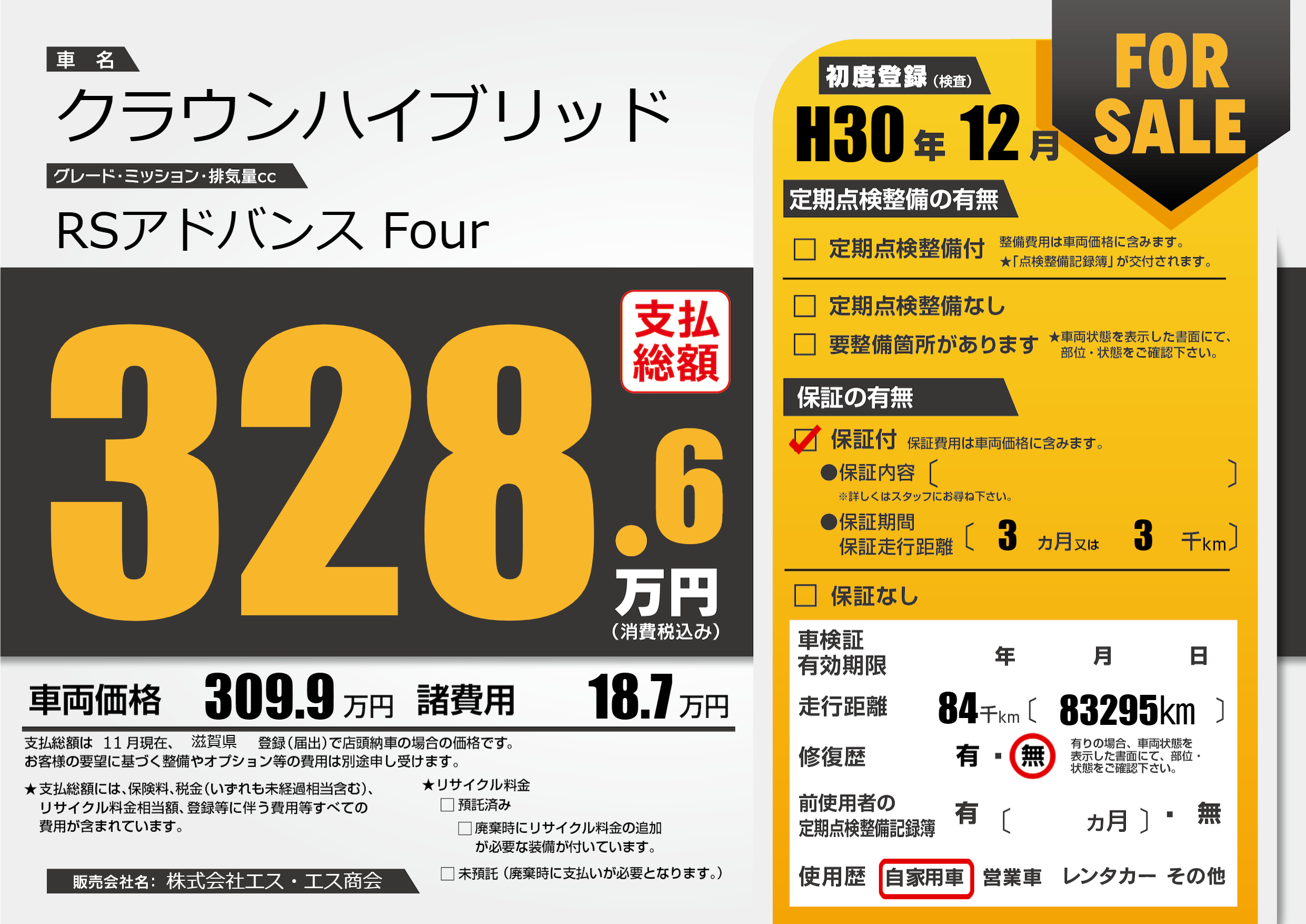 | 車名 | クラウンハイブリッド | グレード ミッション 排気量 |