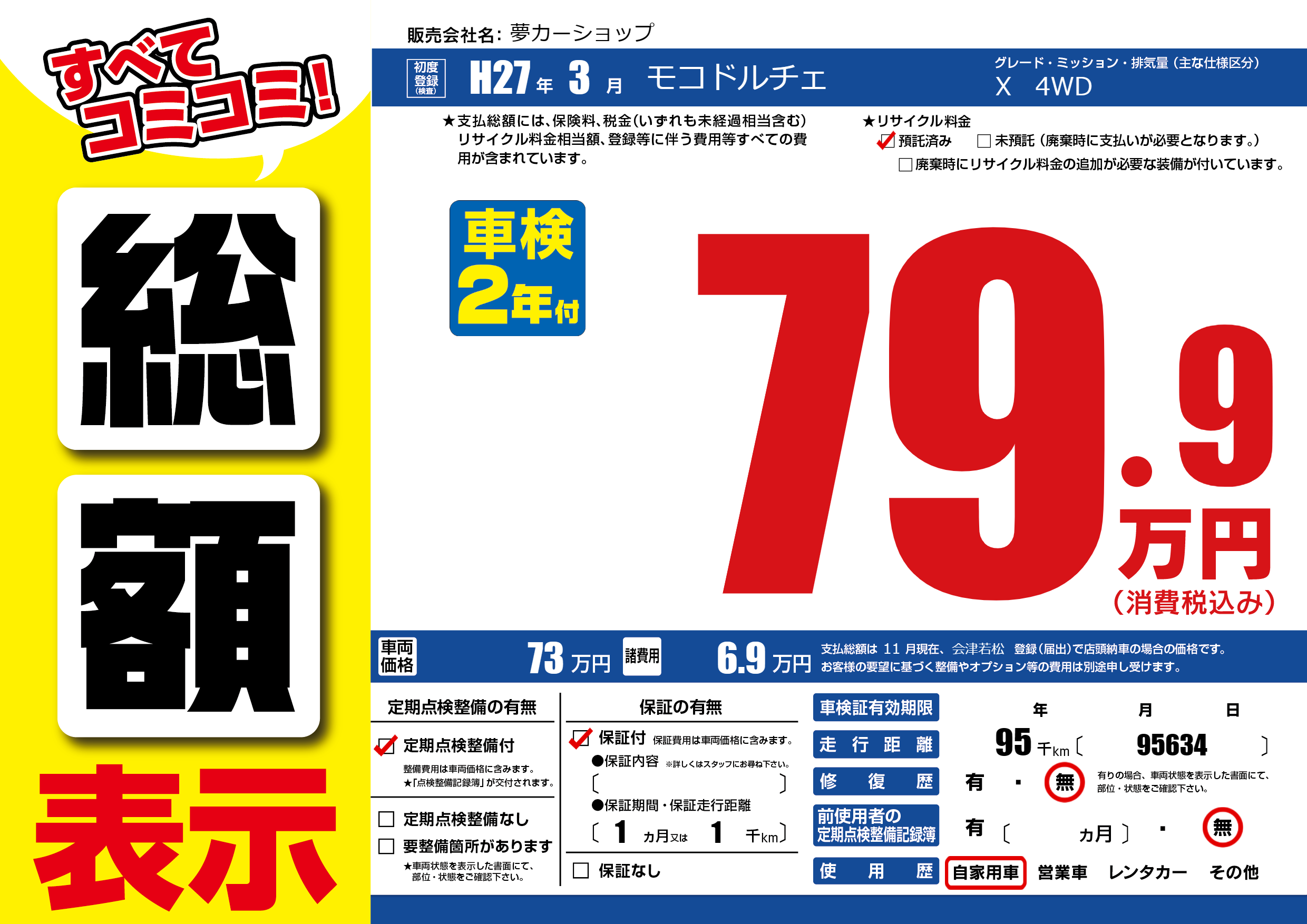 | 車名 | モコドルチェ | グレード ミッション 排気量 |