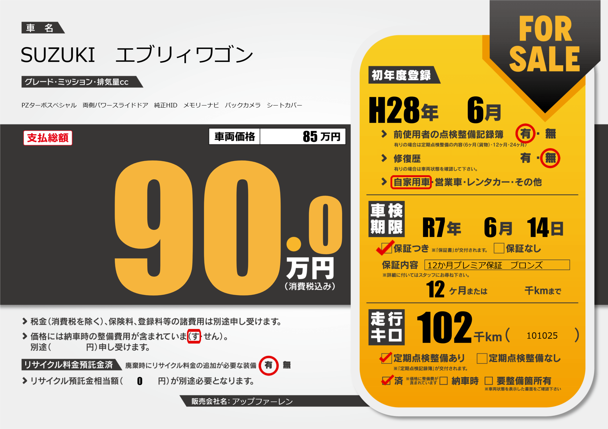 | 定期点検整備 | 定期点検整備あり 定期点検整備済み | ||