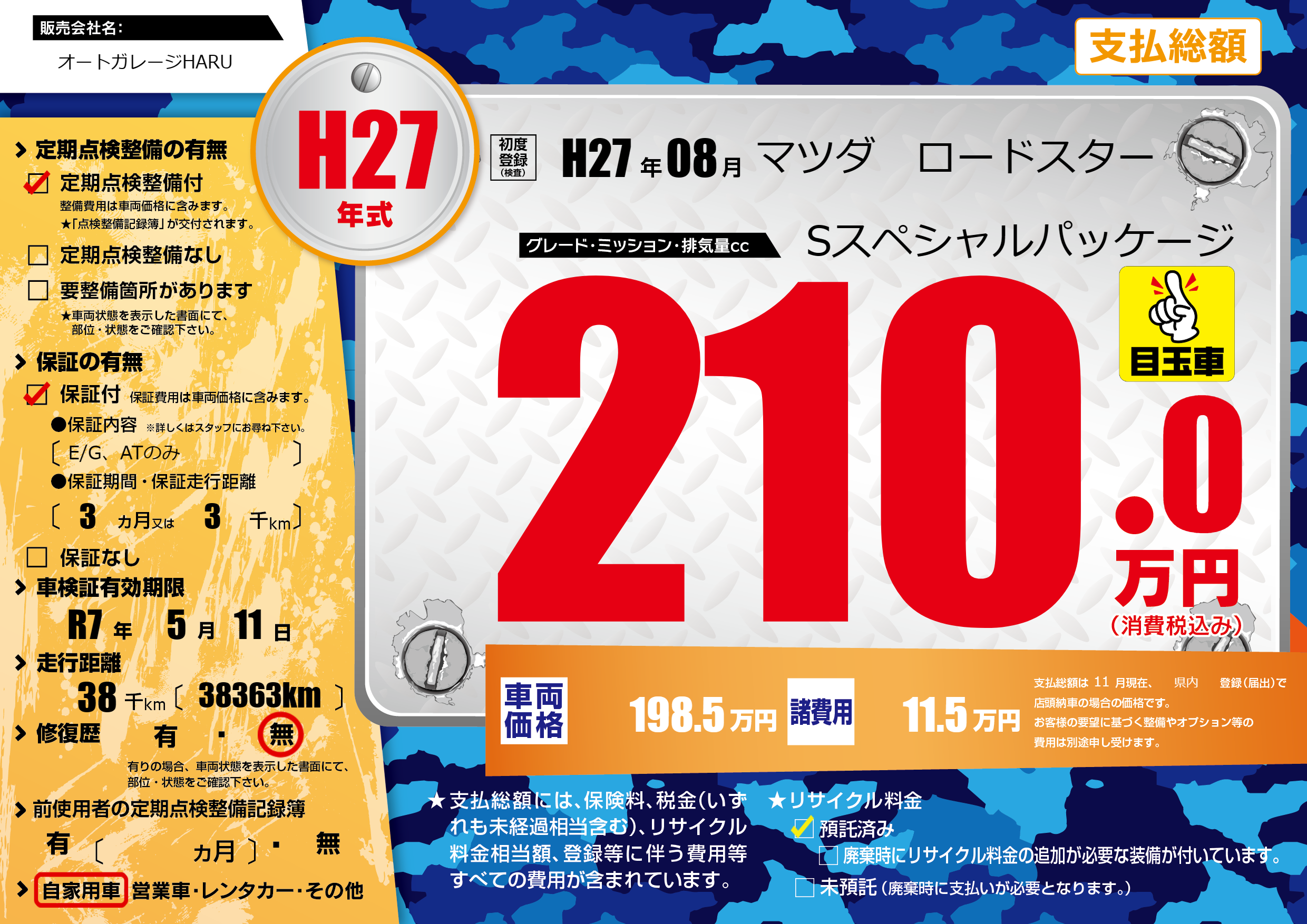 | 車検制限 | R7年 5月 11日 | ||