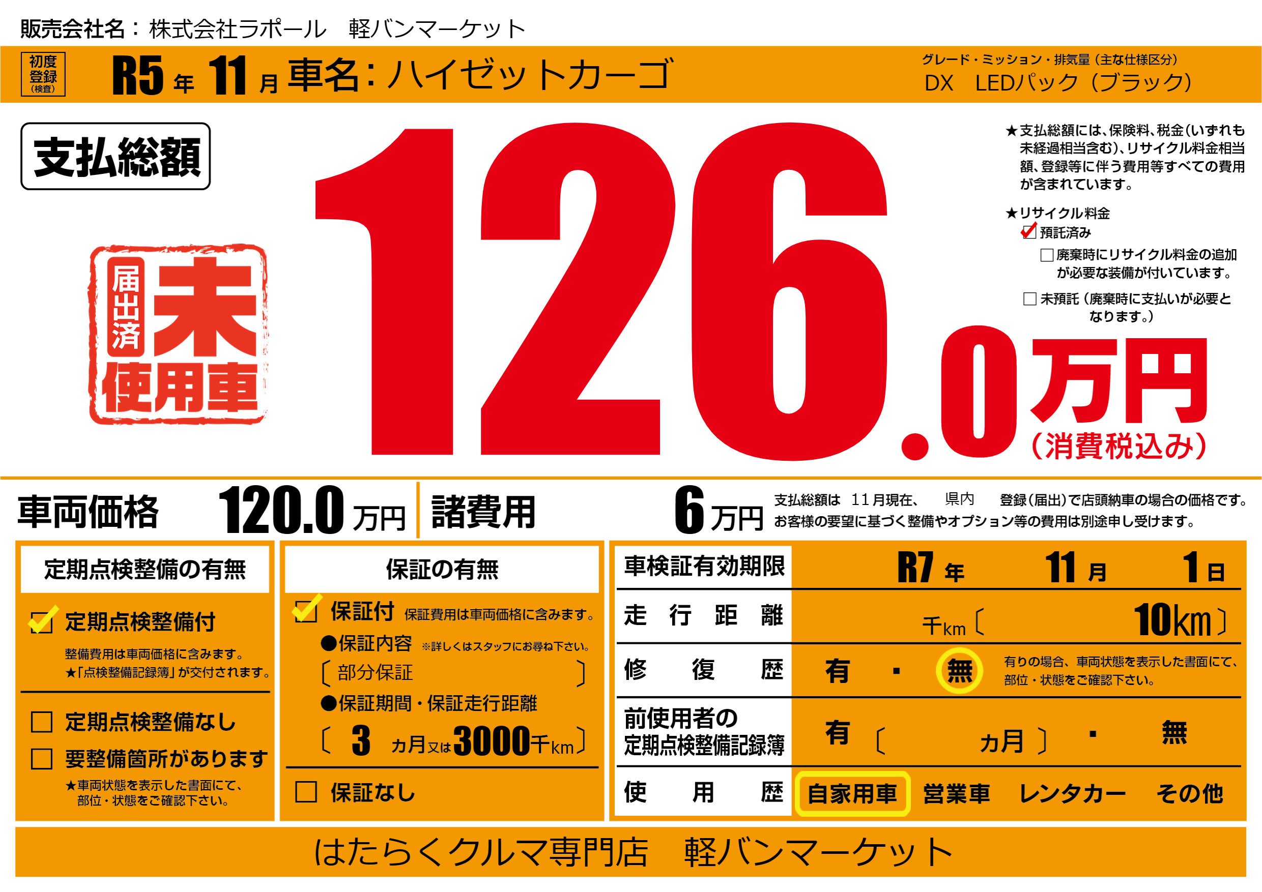 | 走行キロ | - | 初年度登録 | R5年11月 |
