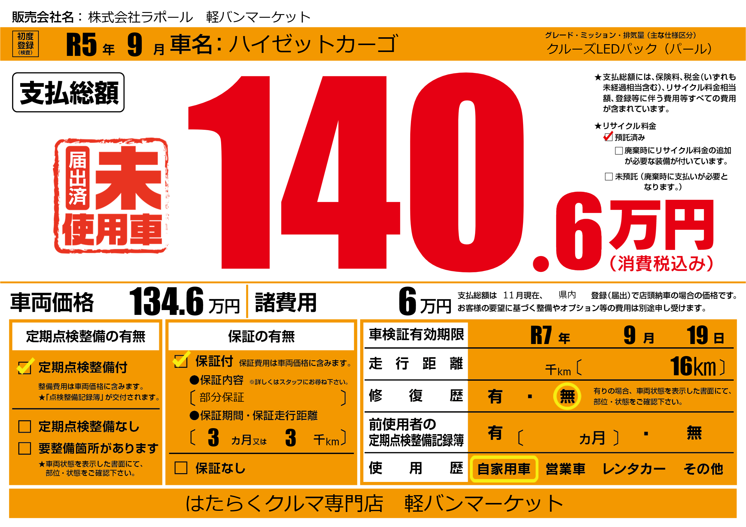 | 走行キロ | - | 初年度登録 | R5年9月 |