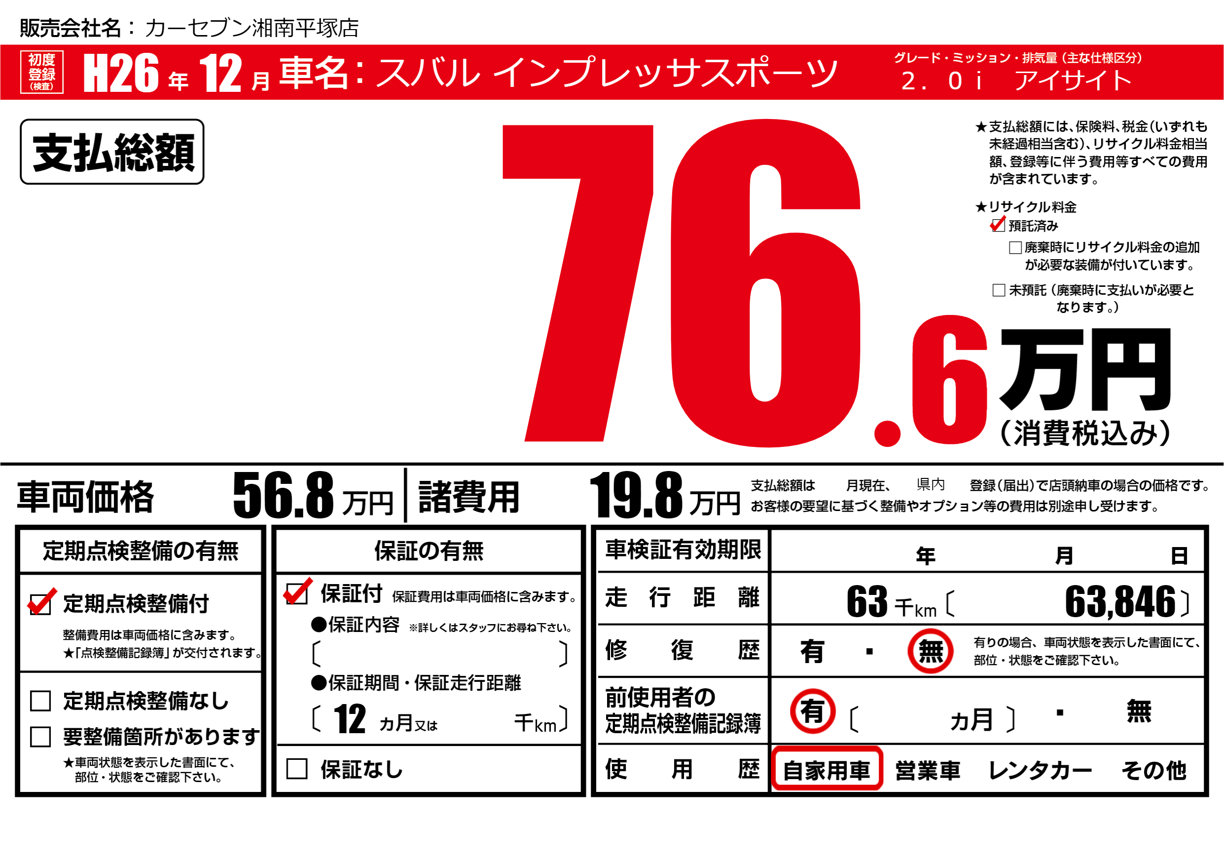 | 走行キロ | 6.3万km | ||