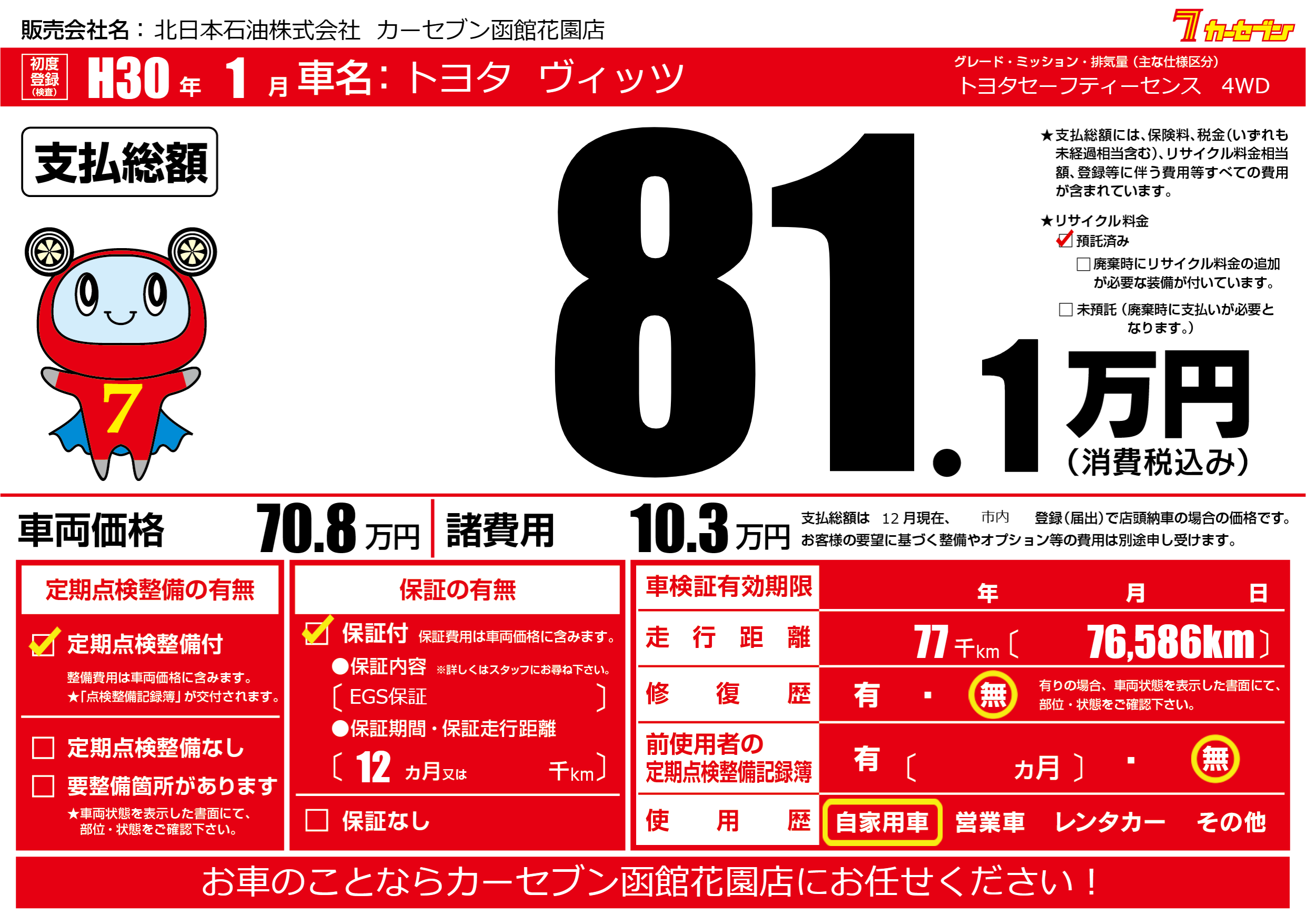 | 走行キロ | 7.7万km | ||