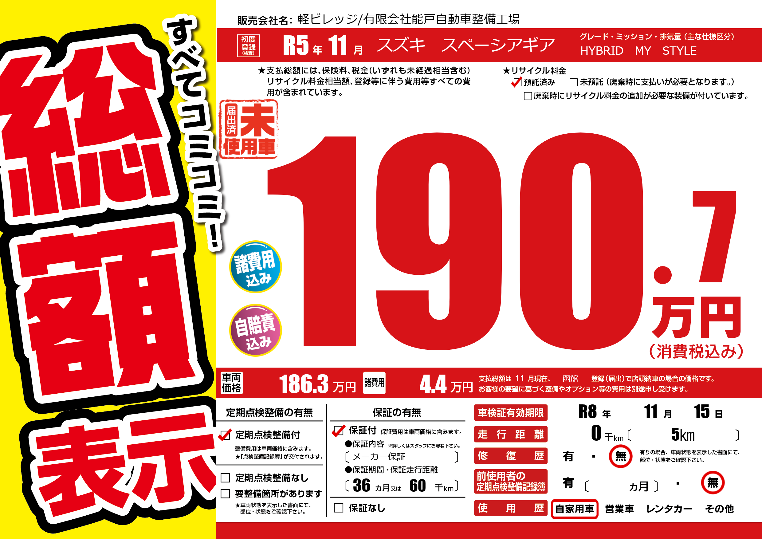 なし | 車検制限 | R8年11月15月 |