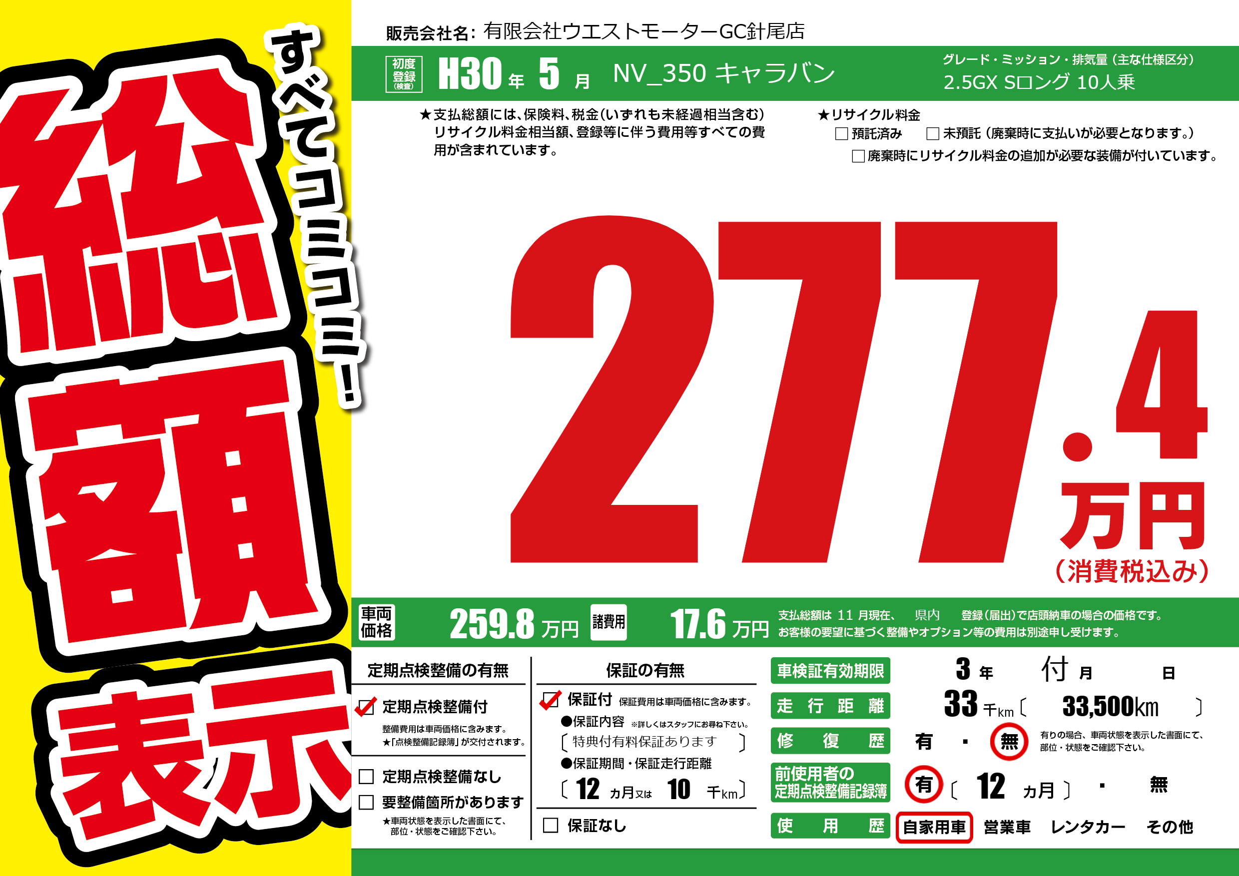 | 車名 | NV_350 キャラバン | グレード ミッション 排気量 |