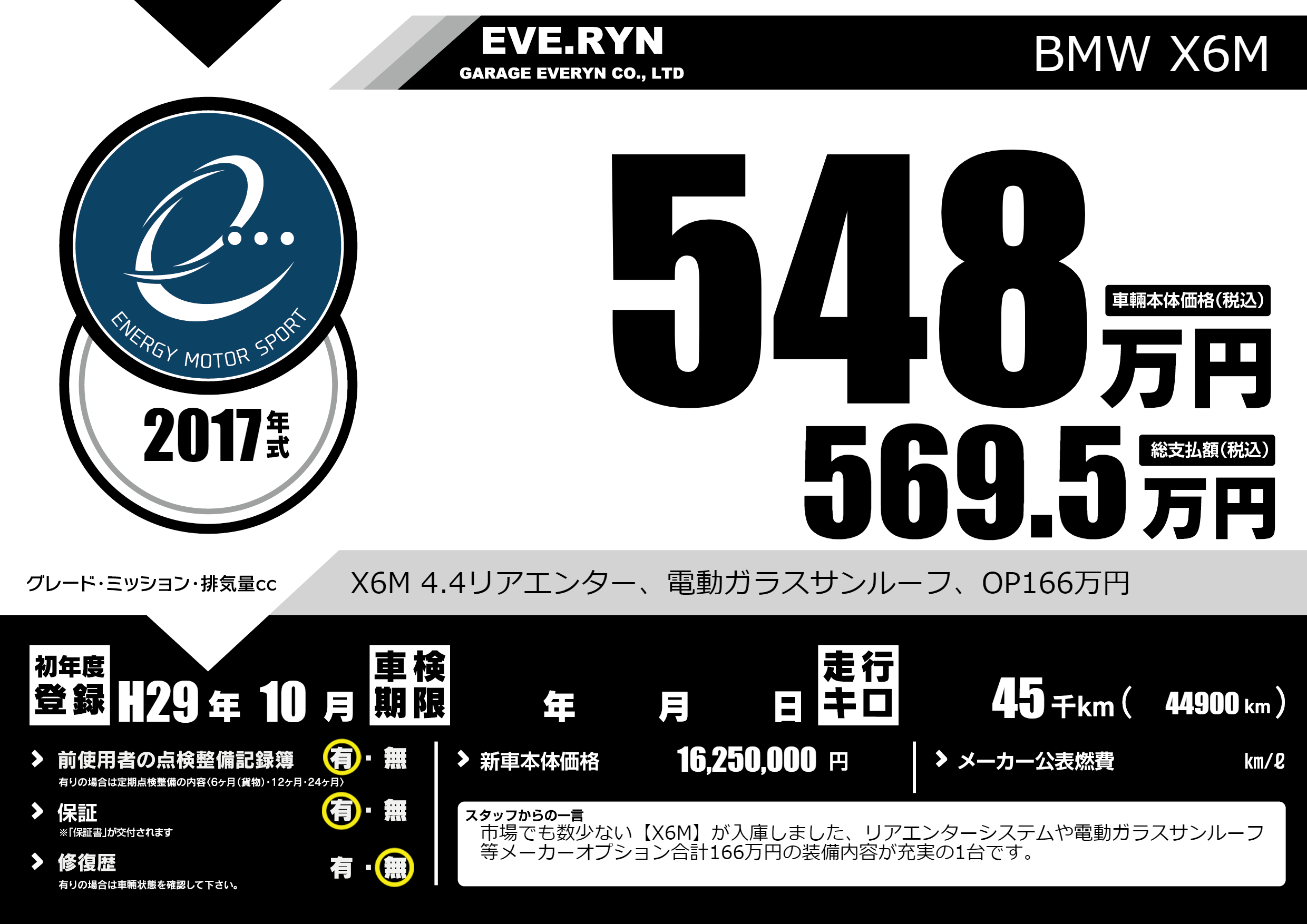 X6M 4.4リアエンター、電動ガラスサンルーフ、OP166万円 |