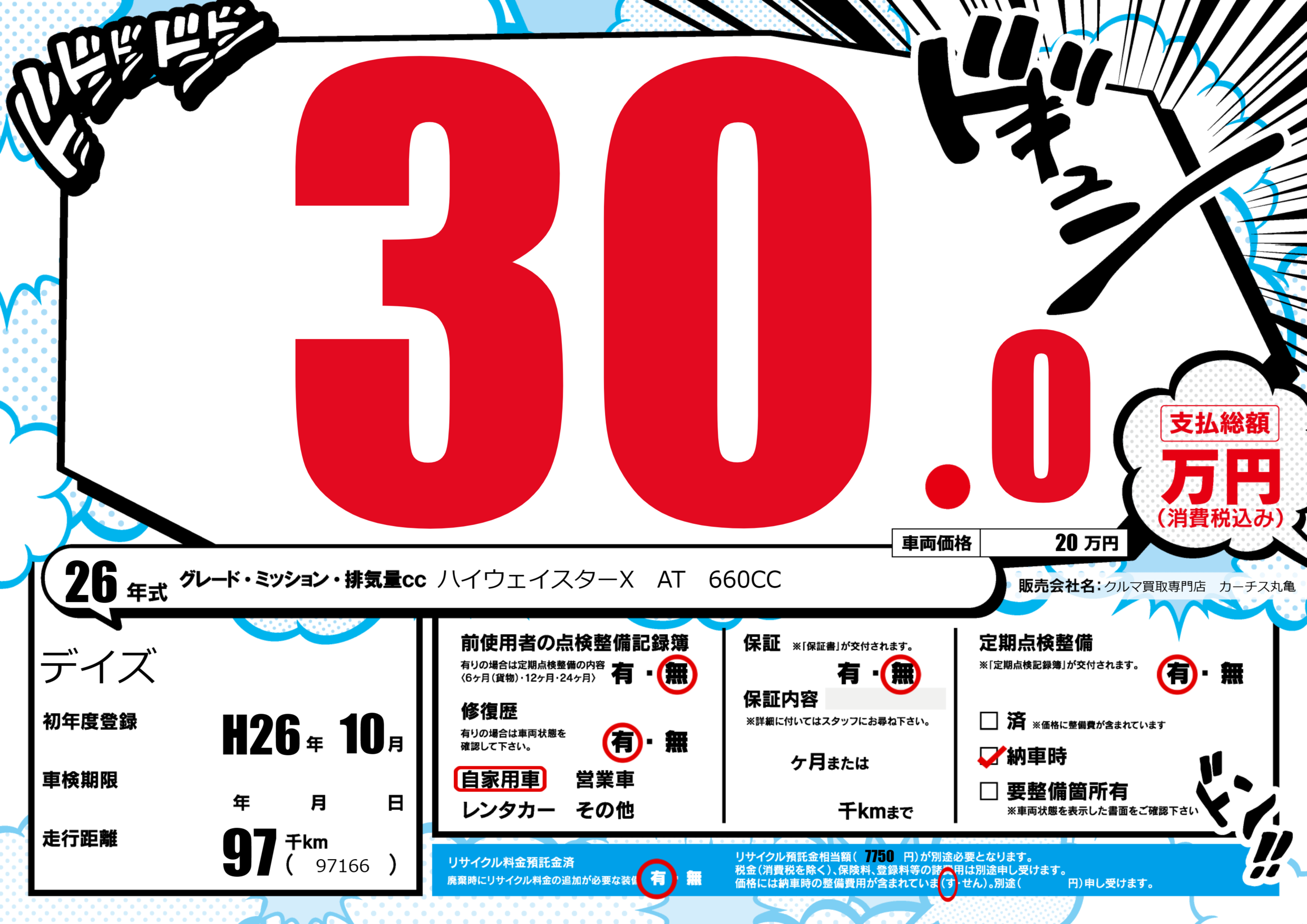 | 走行キロ | 9.7万km | 初年度登録 | H26年10月 |