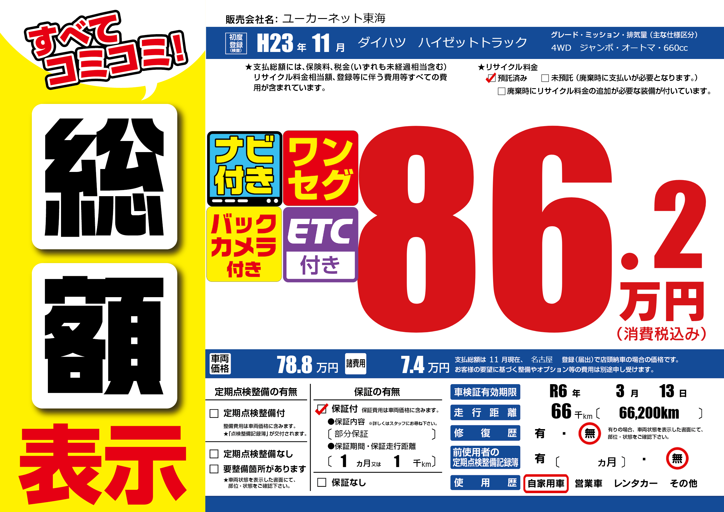 なし | 車検制限 | R6年3月13月 |