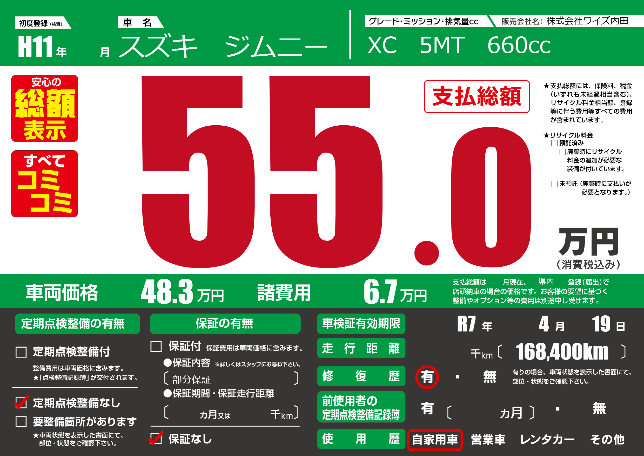 | 車名 | スズキ ジムニー | グレード ミッション 排気量 |