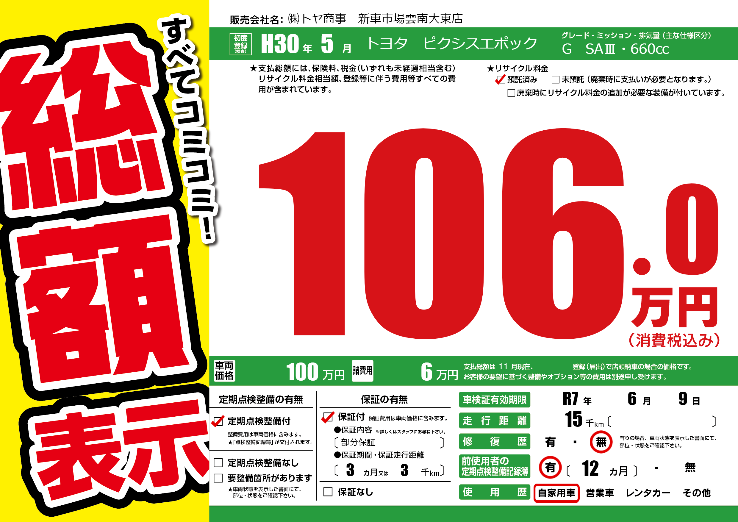 なし | 車検制限 | R7年6月9月 |
