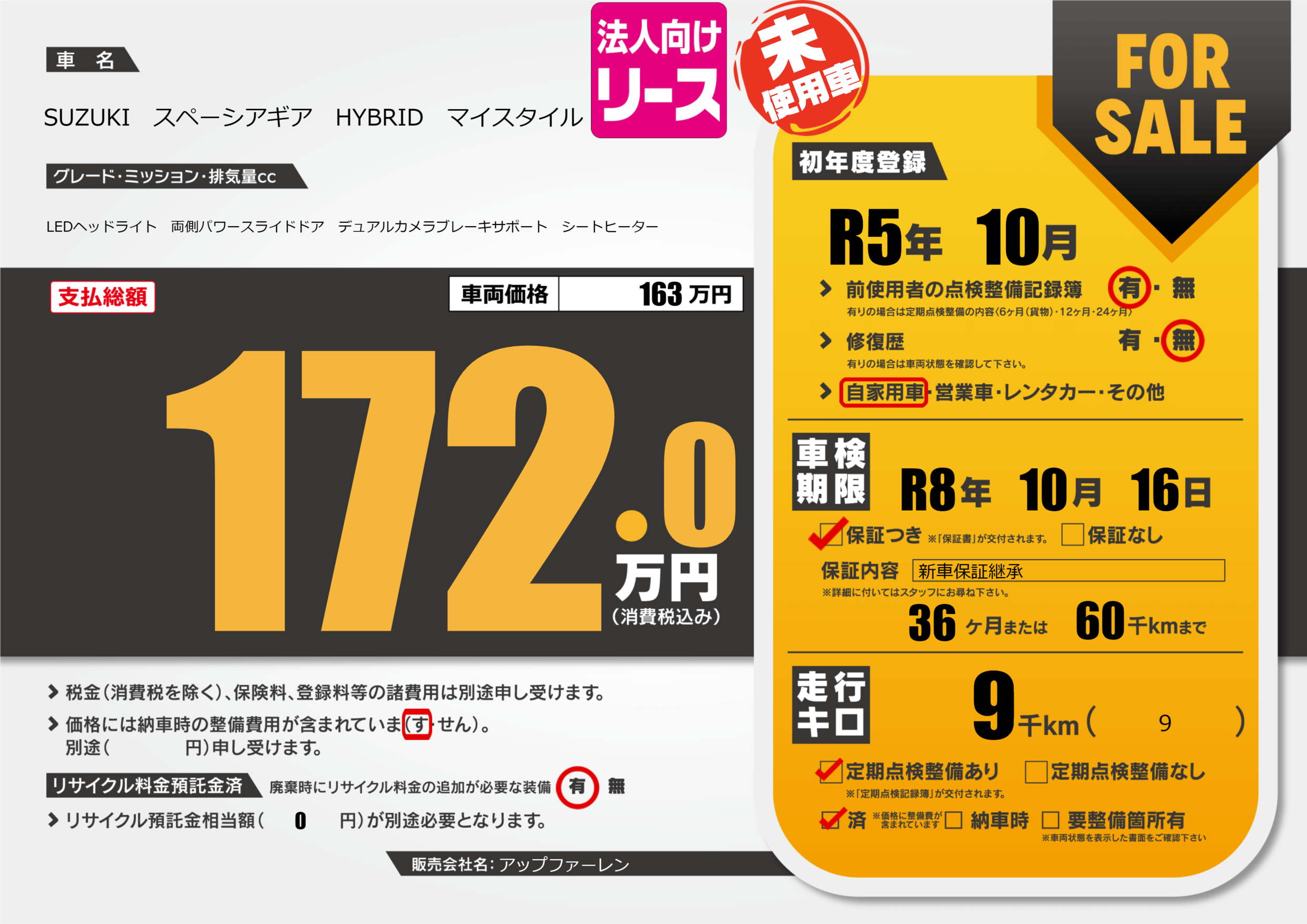 | 定期点検整備 | 定期点検整備あり 定期点検整備済み | ||