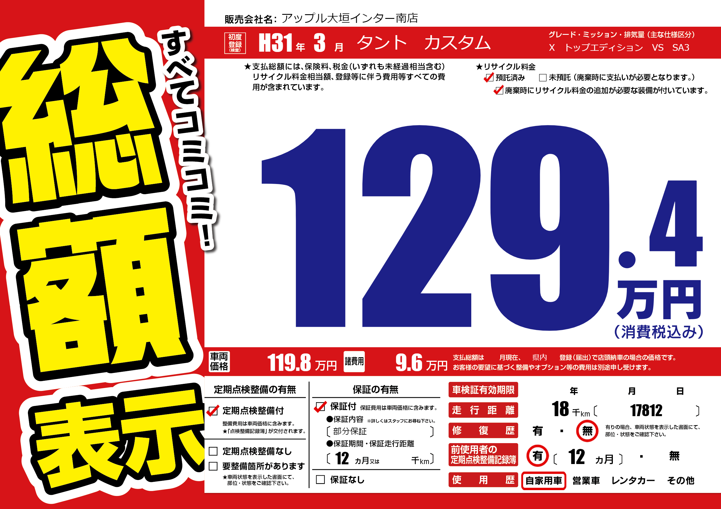 | 車名 | タント カスタム | グレード ミッション 排気量 |