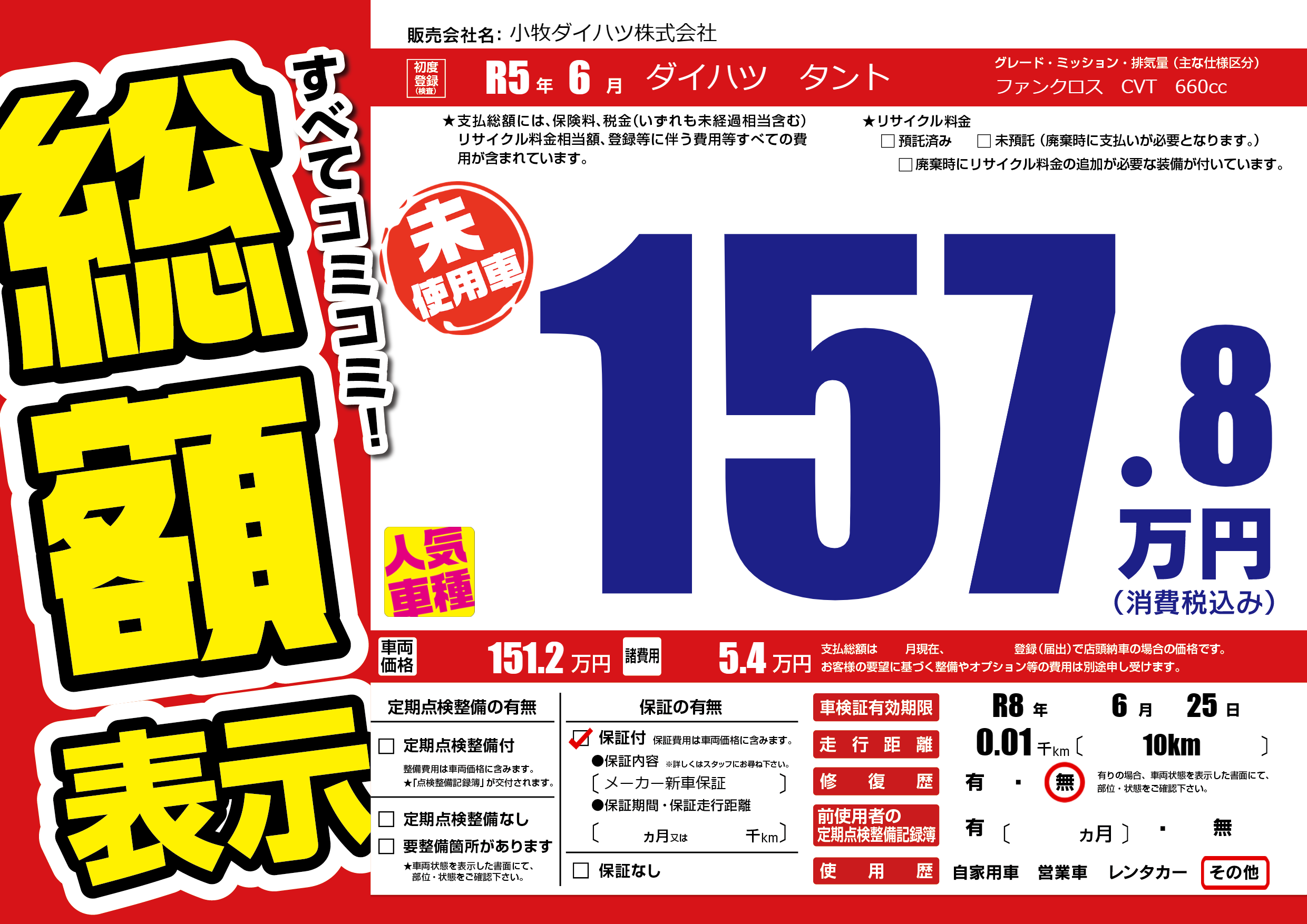 | 車名 | ダイハツ タント | グレード ミッション 排気量 |