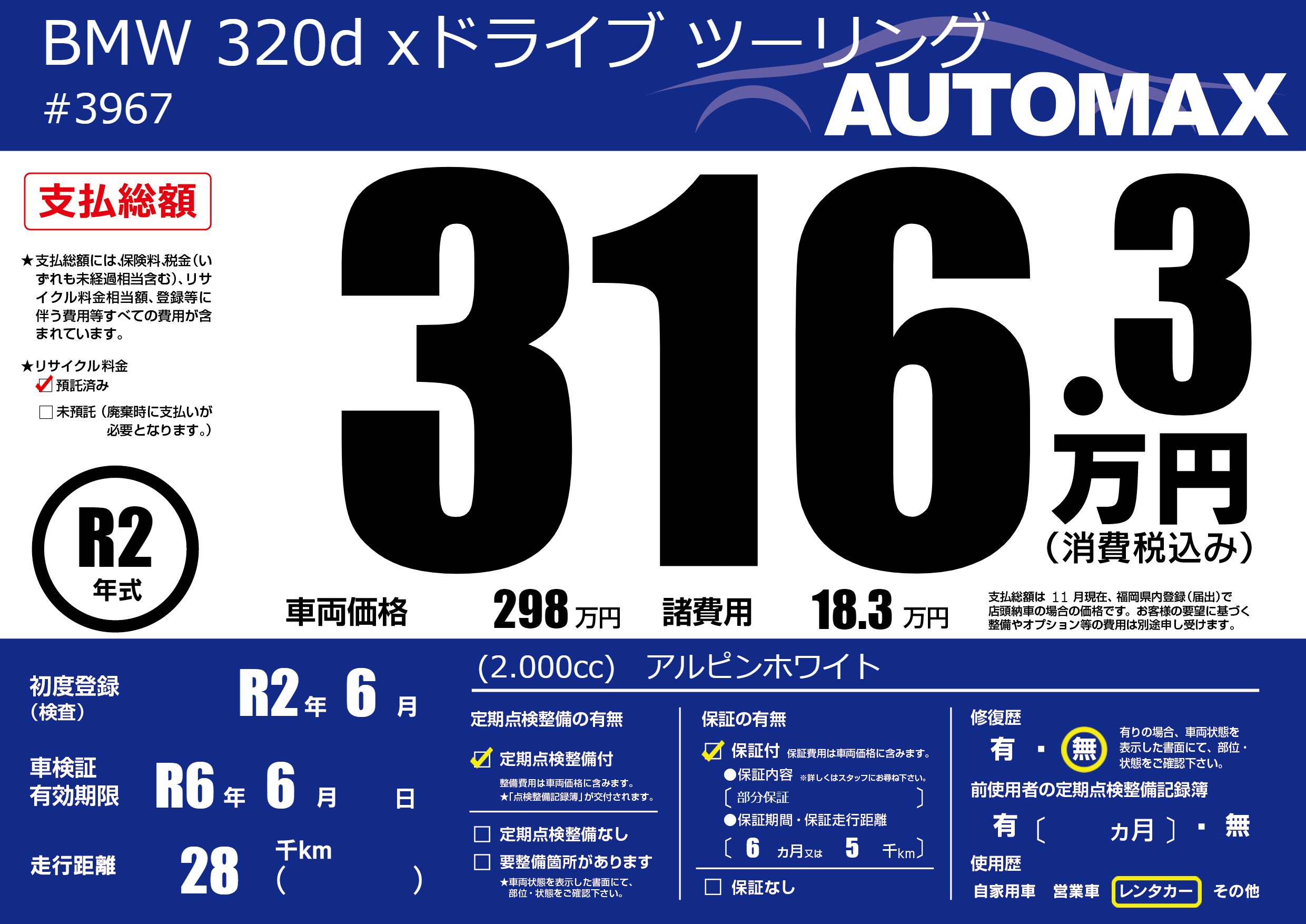 保証付き 保証内容(部分保証) 6ヶ月または(5)千kmまで |