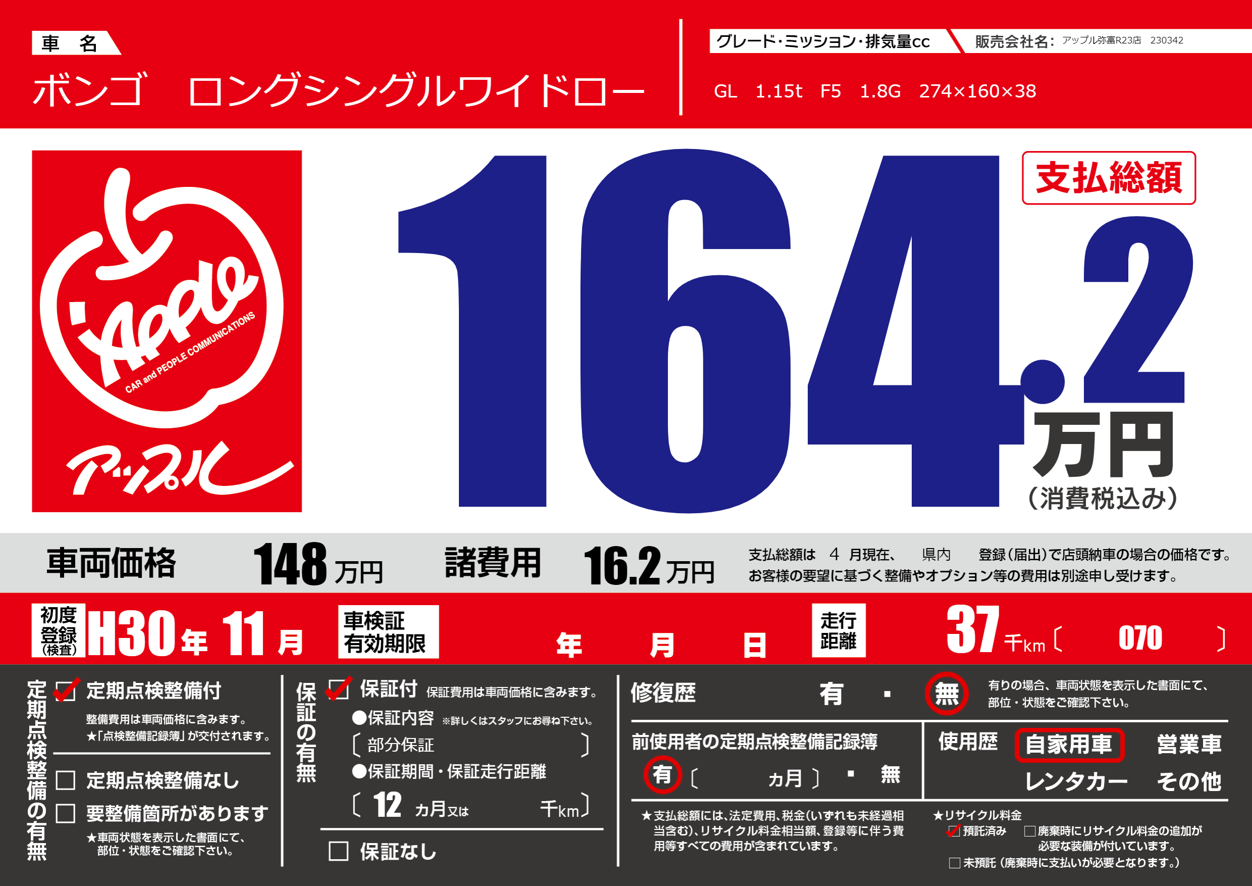 | 走行キロ | 3.7万km | ||