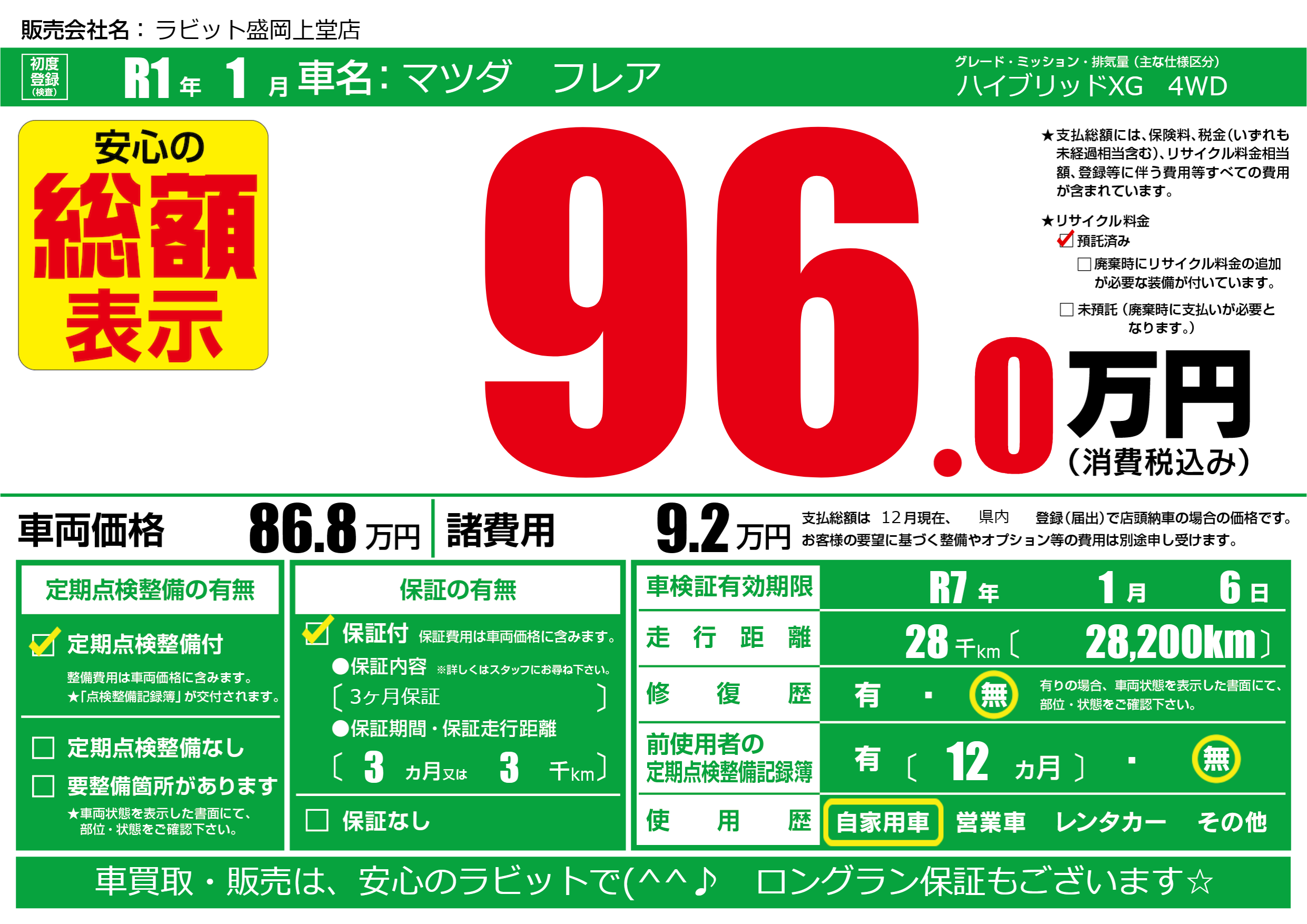 なし | 車検制限 | R7年1月6月 |