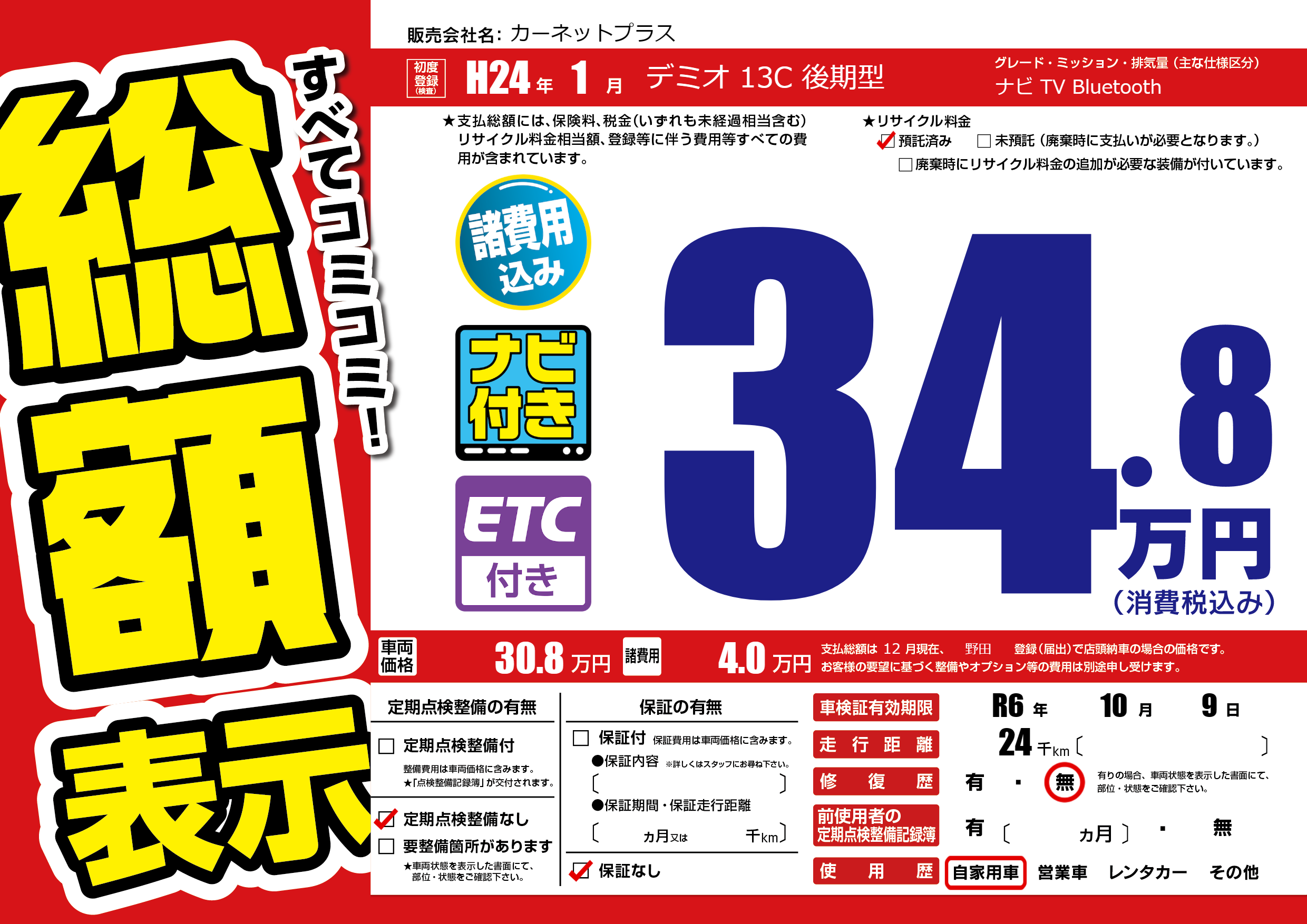 なし | 車検制限 | R6年10月9月 |