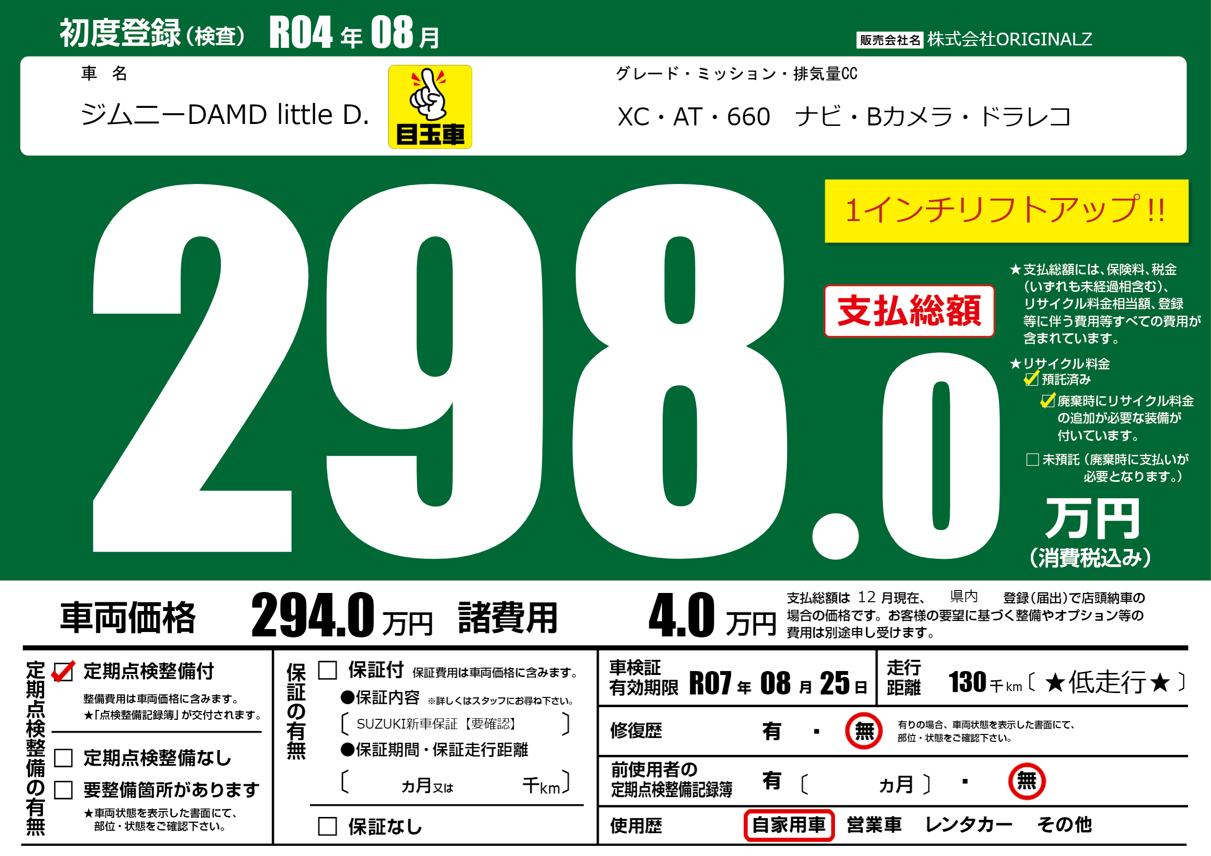 | 車名 | ジムニーDAMD little D. | グレード ミッション 排気量 |