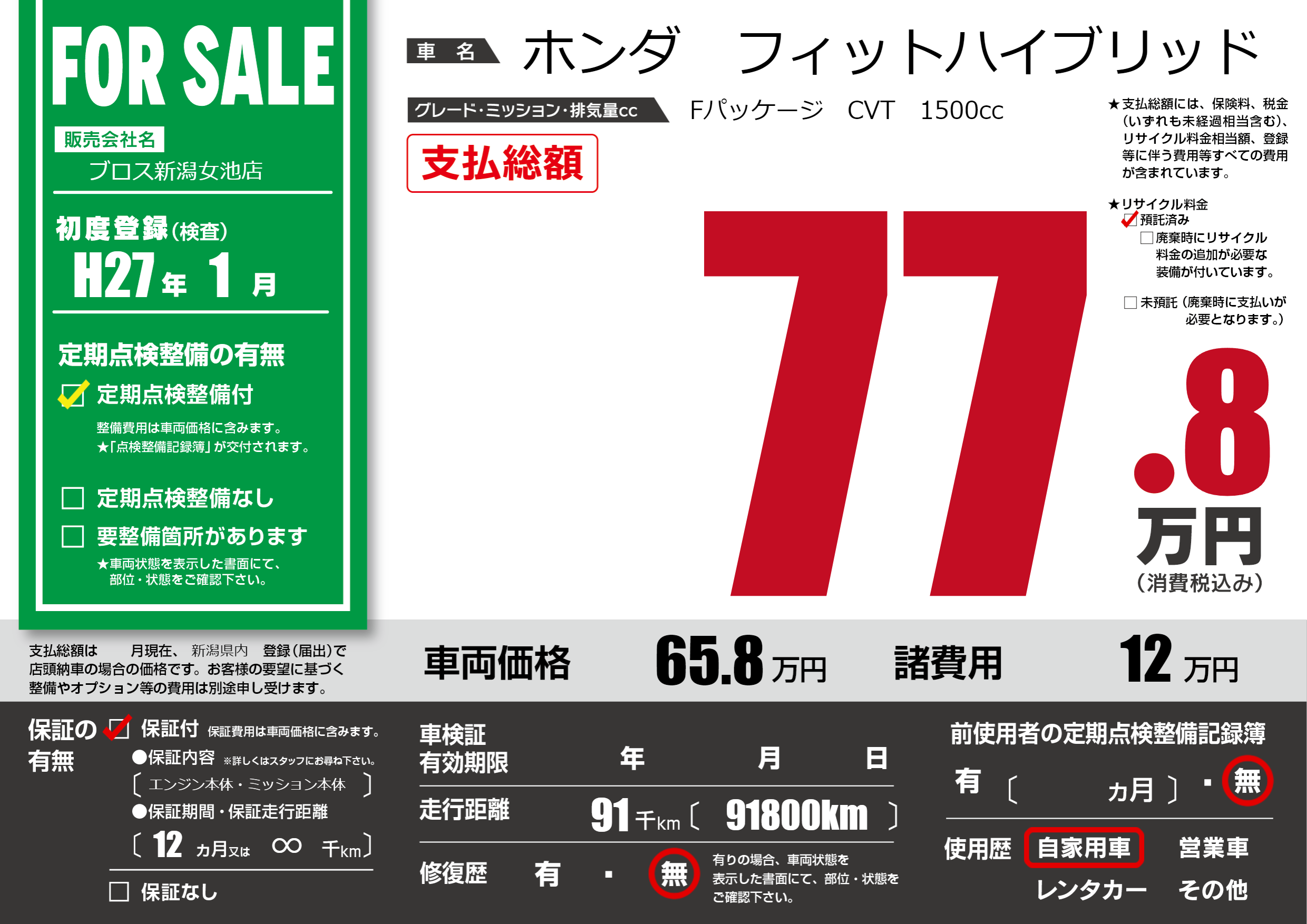 | 走行キロ | 9.1万km | 初年度登録 | H27年1月 |