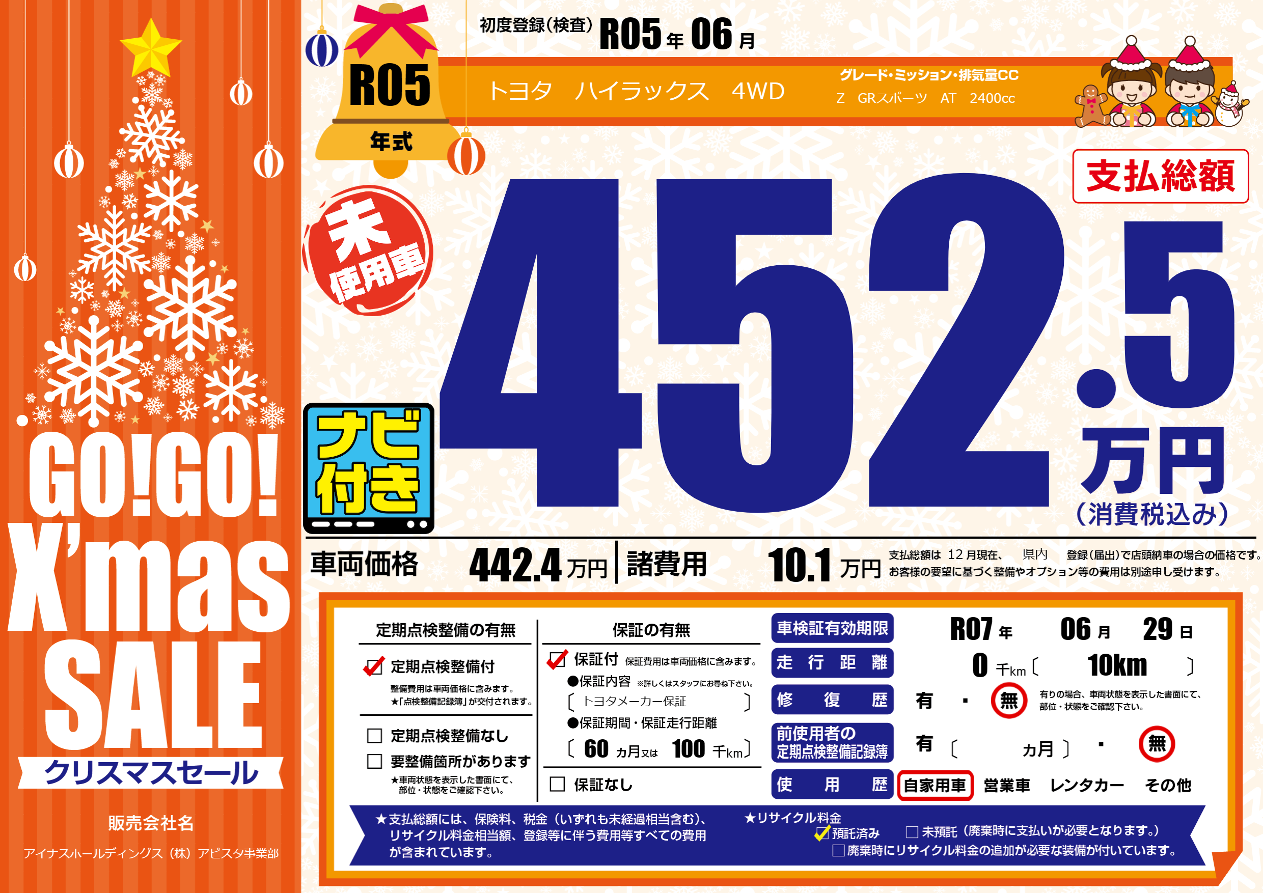 | 走行キロ | - | 初年度登録 | R05年06月 |