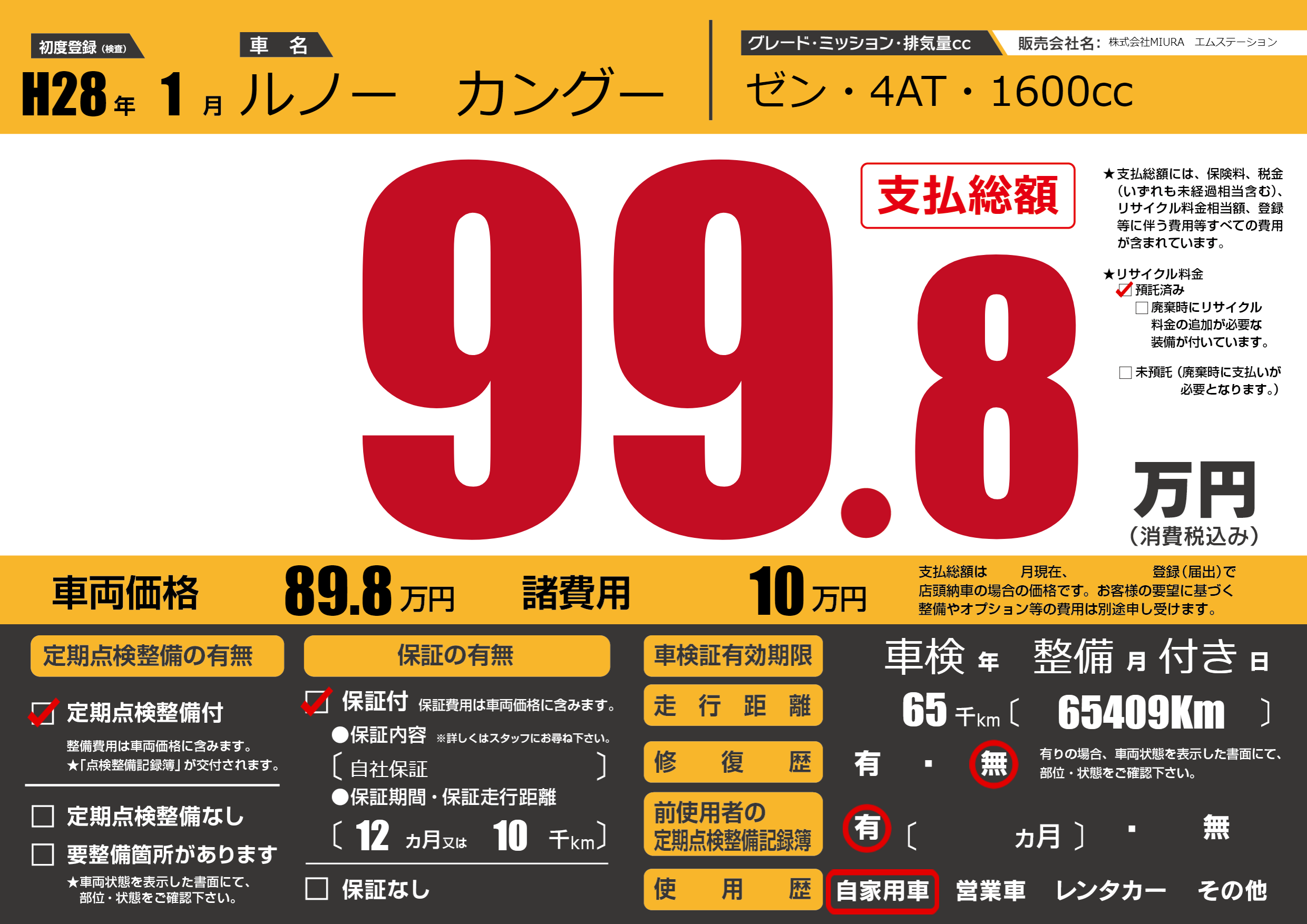 保証付き 保証内容(自社保証) 12ヶ月または(10)千kmまで |