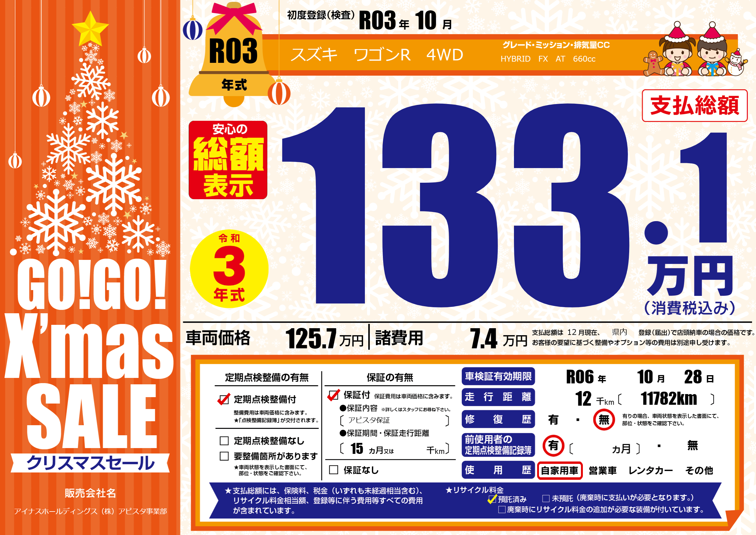 | 車名 | スズキ ワゴンR 4WD | グレード ミッション 排気量 |