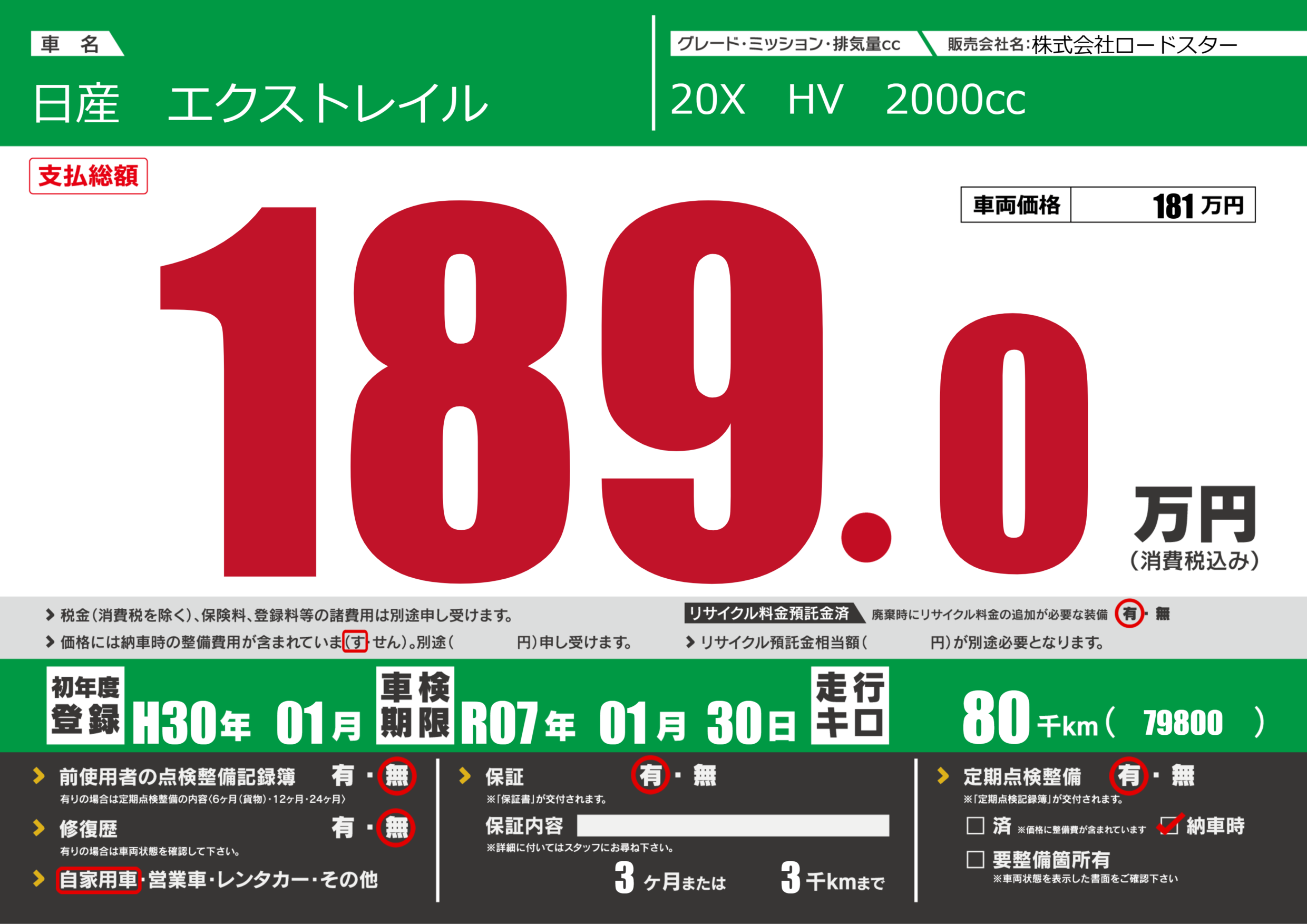 あり | 車検制限 | R07年01月30月 |