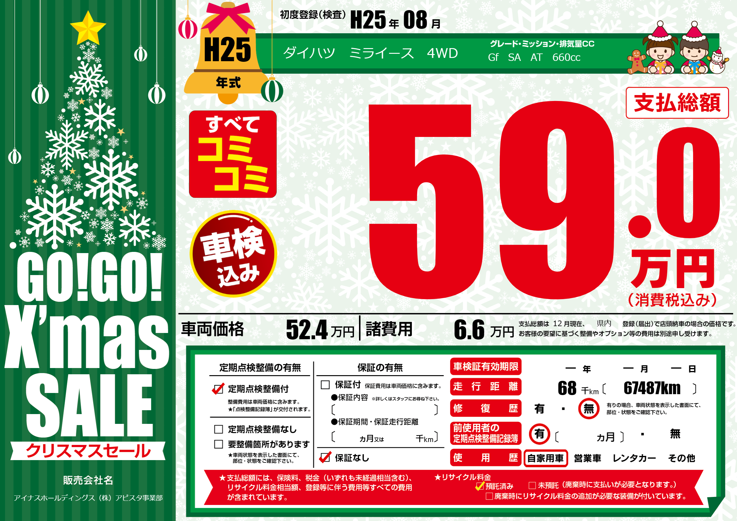 | 走行キロ | 6.8万km | 初年度登録 | H25年08月 |