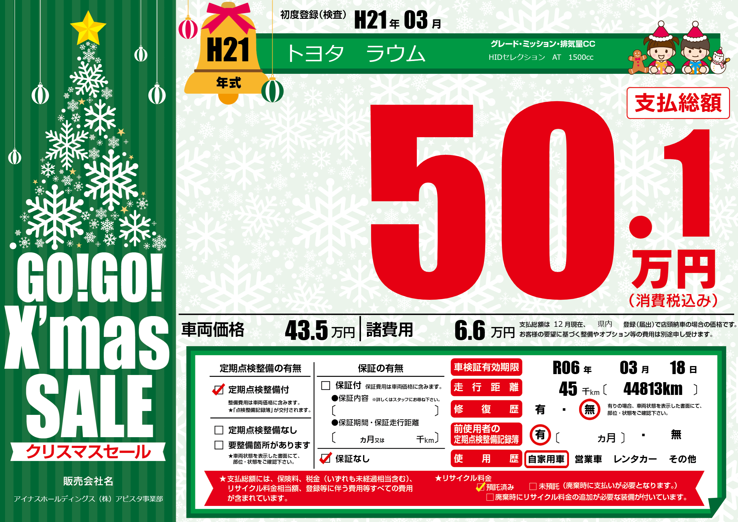 | 車名 | トヨタ ラウム | グレード ミッション 排気量 |