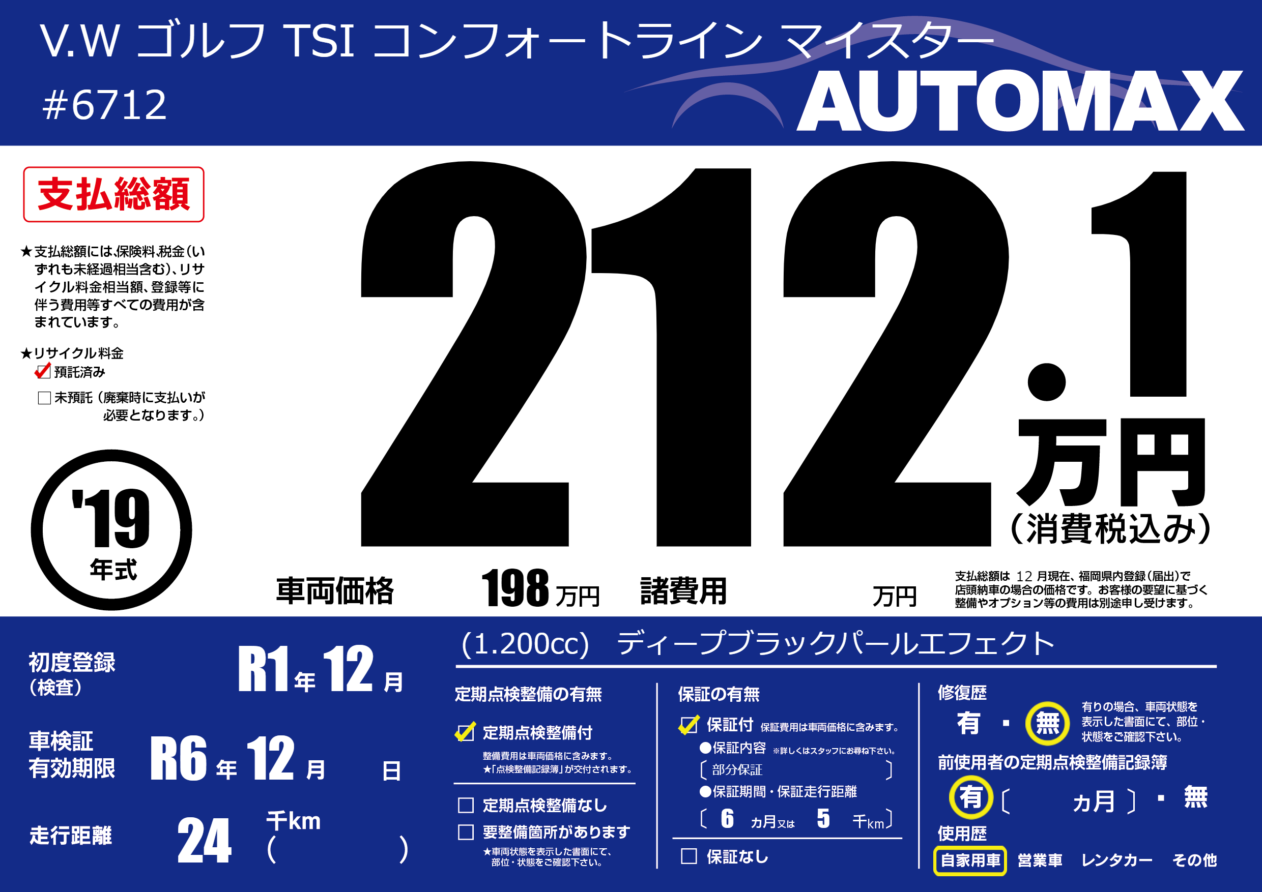 | 車検制限 | R6年 12月 - 日 | ||