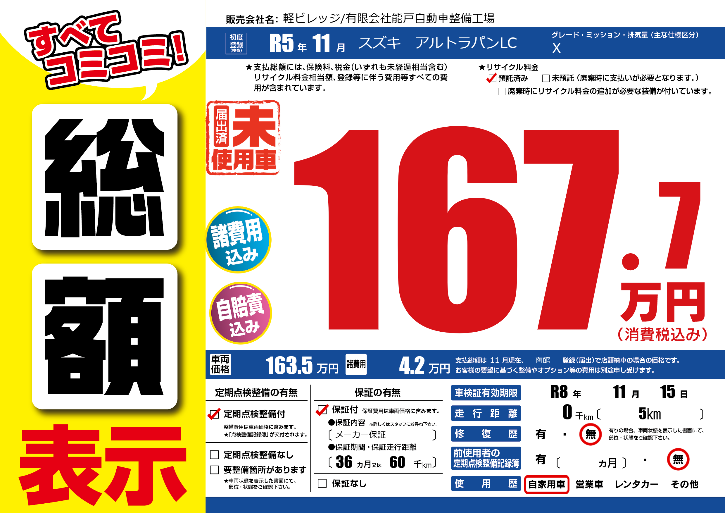 | 走行キロ | - | 初年度登録 | R5年11月 |