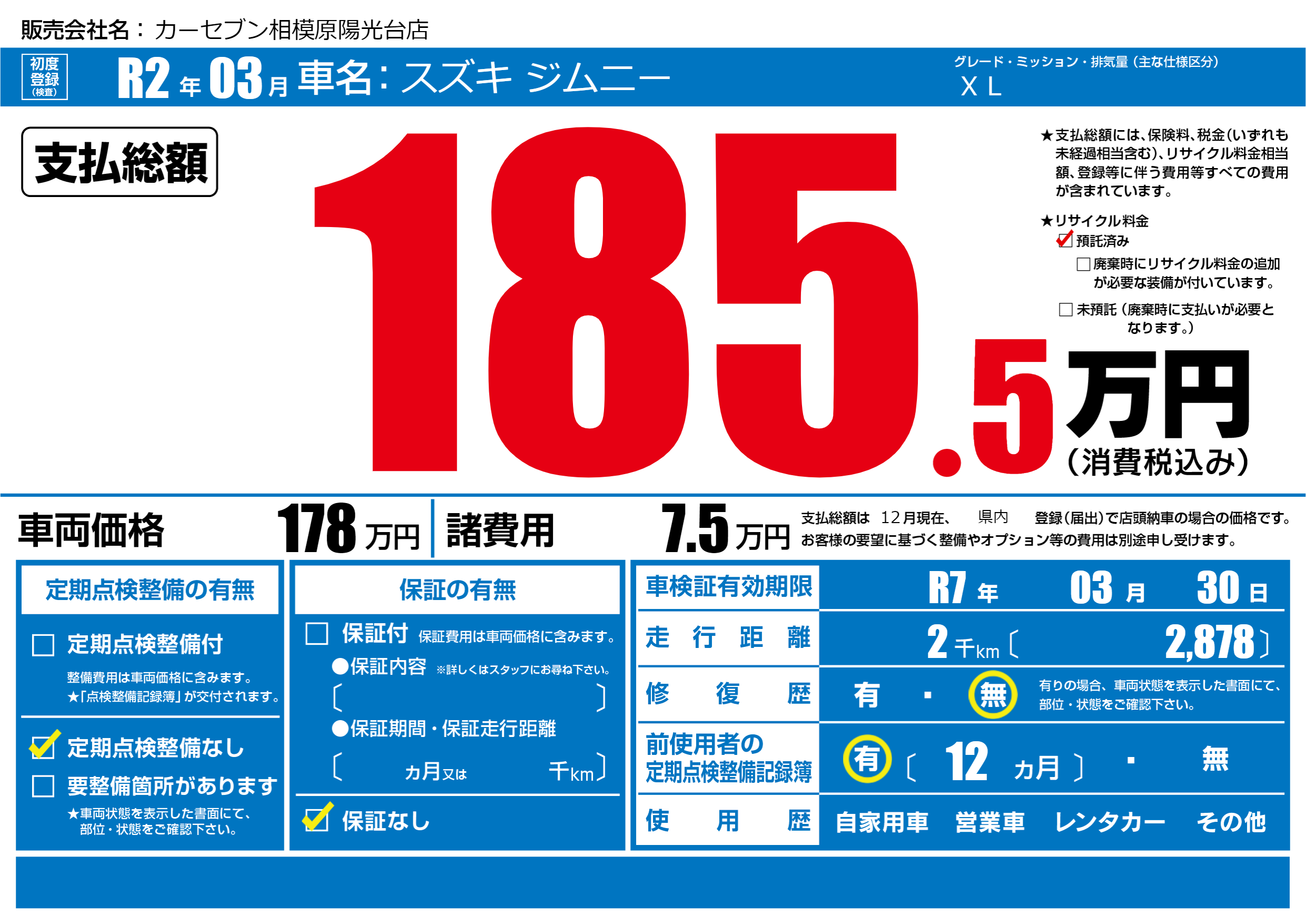 なし | 車検制限 | R7年03月30月 |