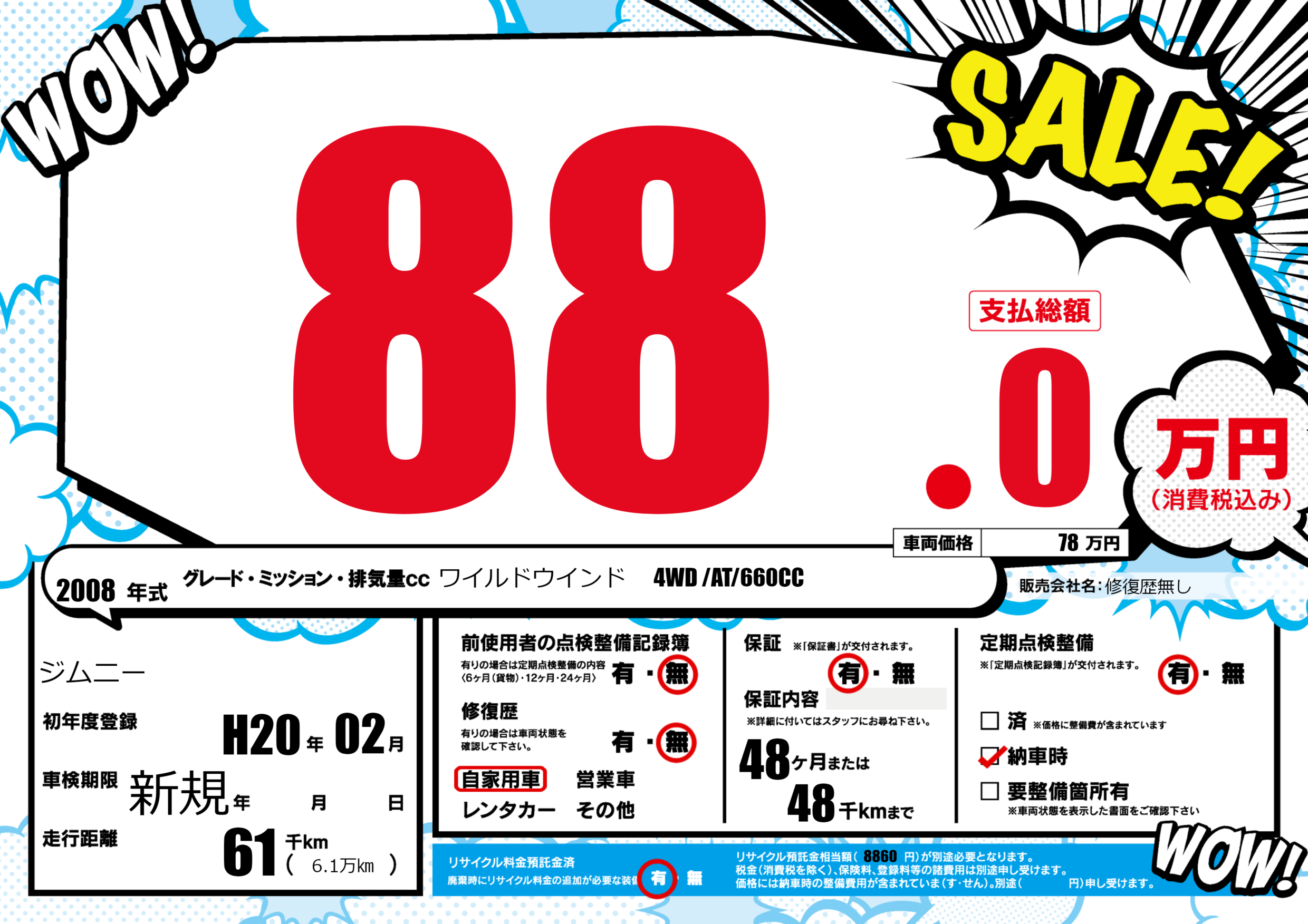 保証付き 保証内容(---) 48ヶ月または(48)千kmまで |