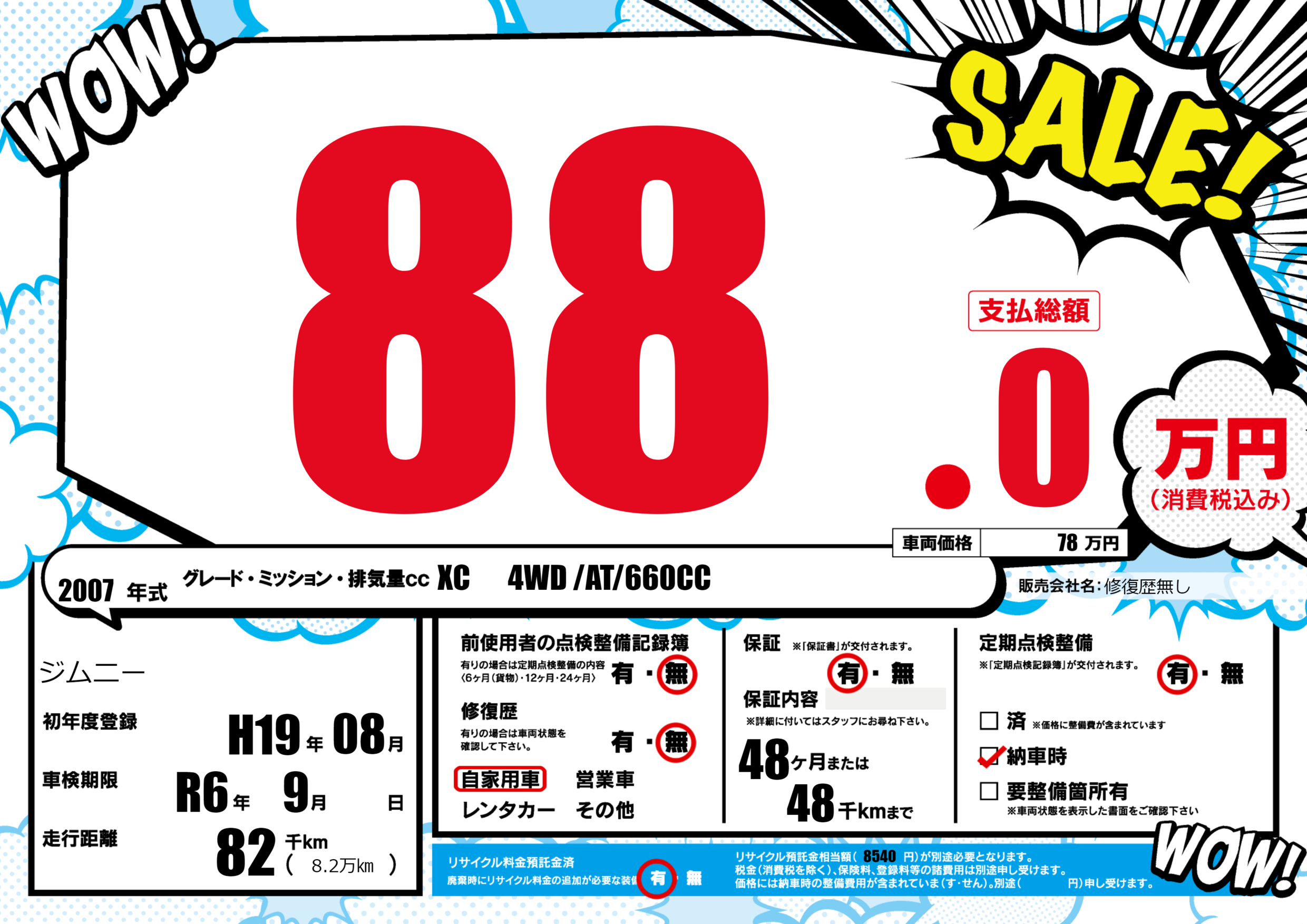 | 車名 | ジムニー | グレード ミッション 排気量 |