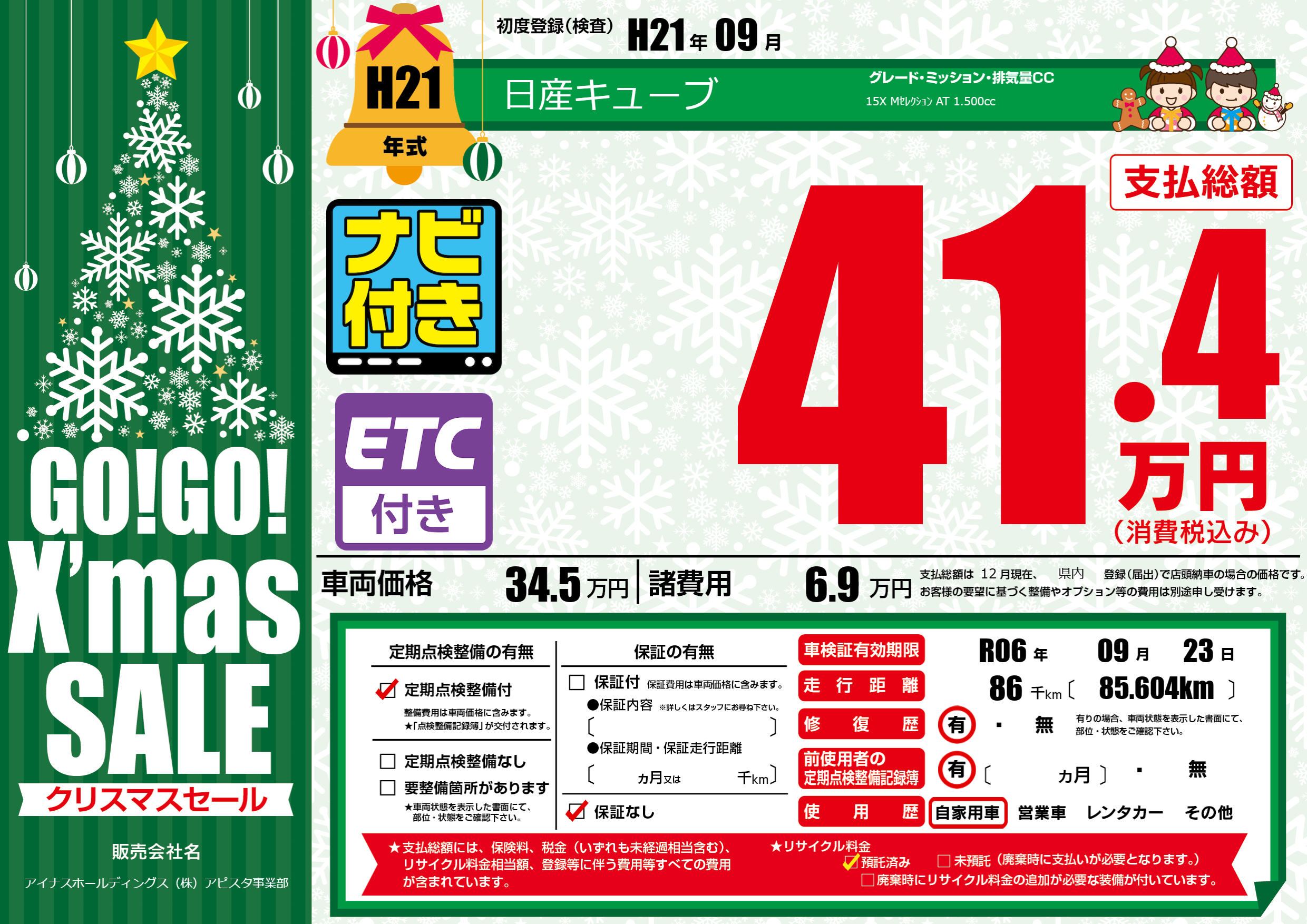 | 車名 | 日産キューブ | グレード ミッション 排気量 |