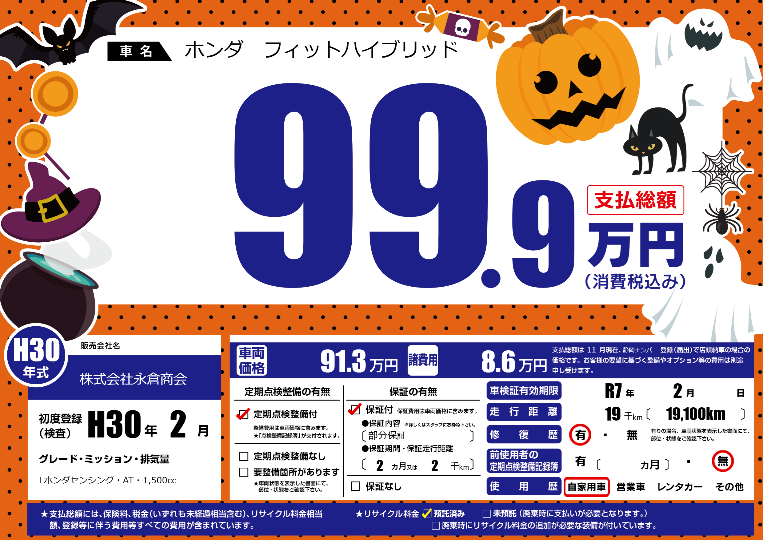 | 走行キロ | 1.9万km | 初年度登録 | H30年2月 |