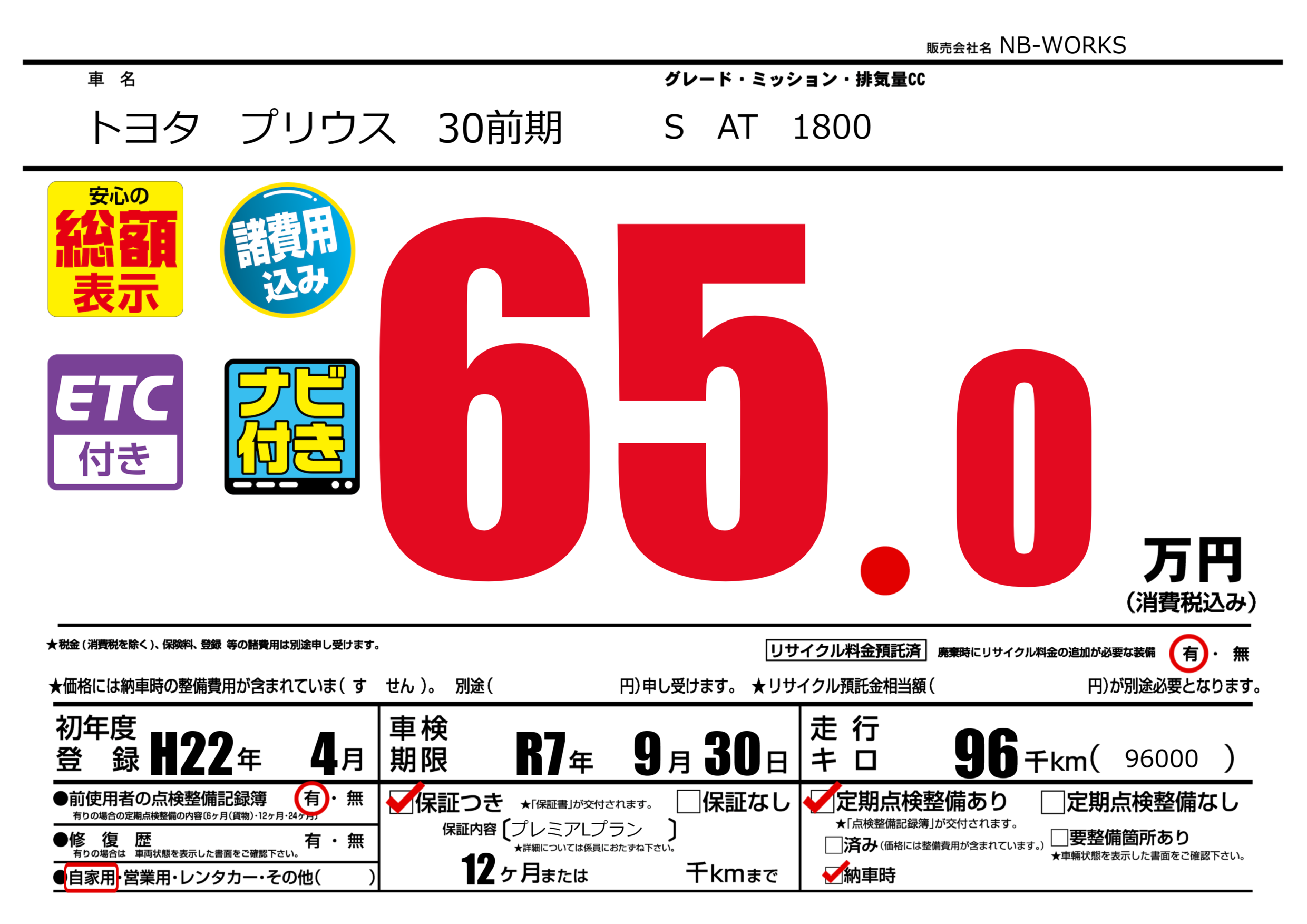 なし | 車検制限 | R7年9月30月 |